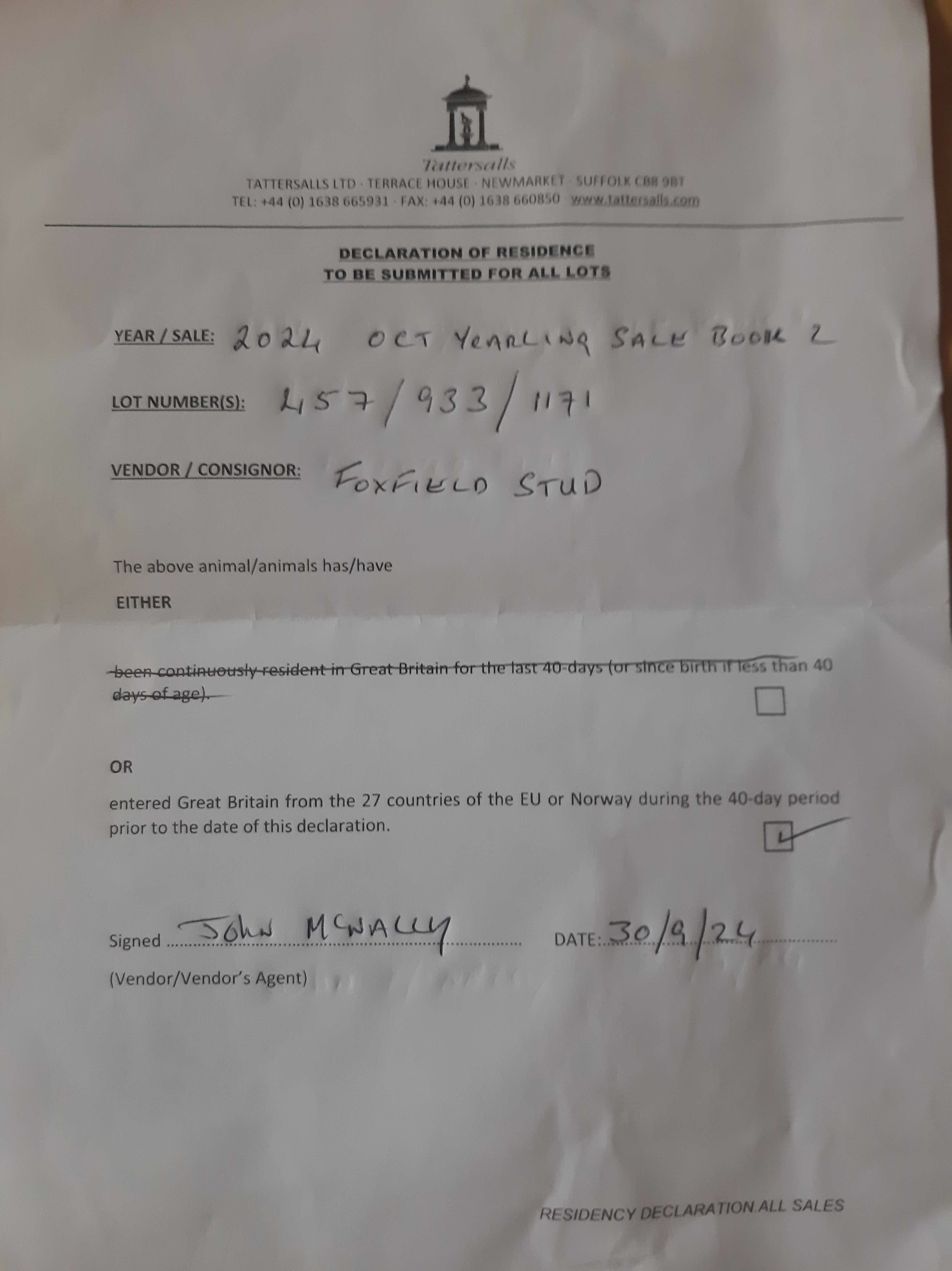 Consignor: Foxfield Stud