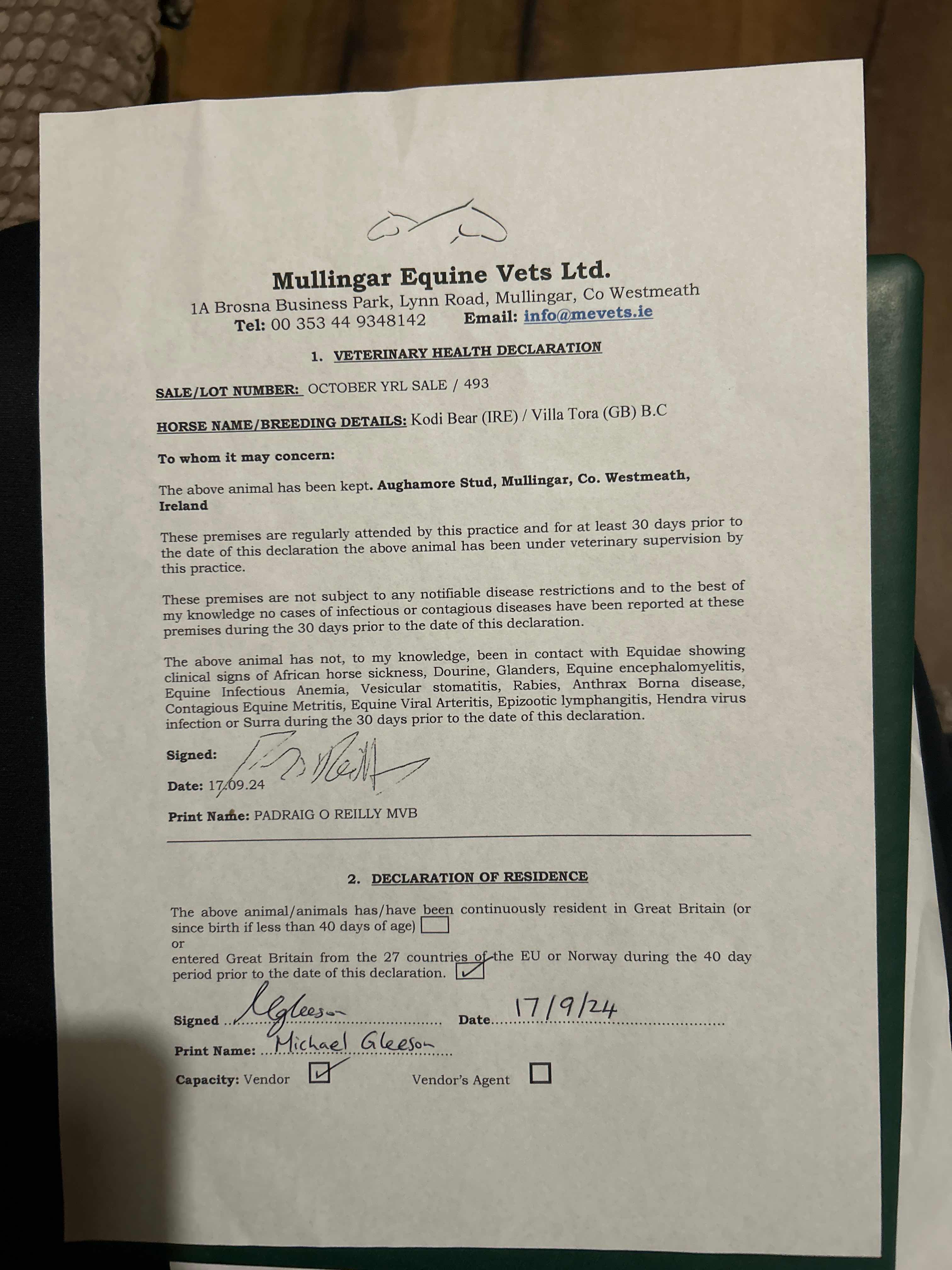 December Foal Sale 2023 lot 502, Mickley Stud Ltd.=>Aughamore Stud 20,000 gns