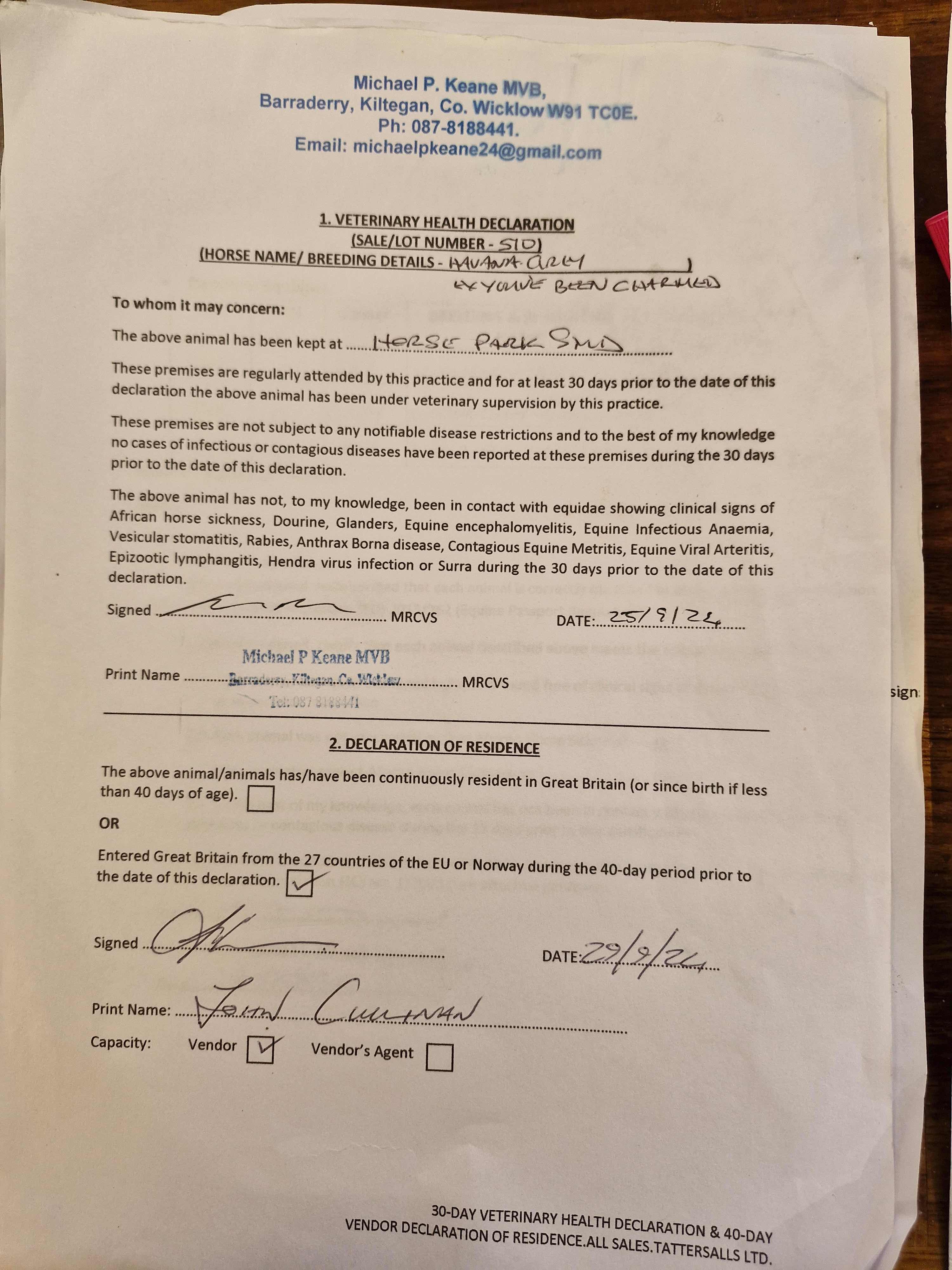 Consignor: Keith Harte (Agent)