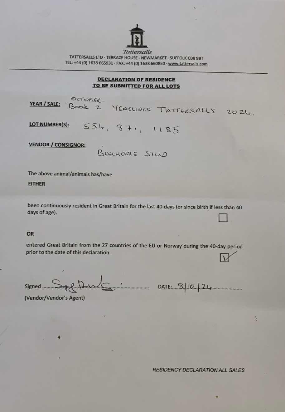 Consignor: Beechvale Stud