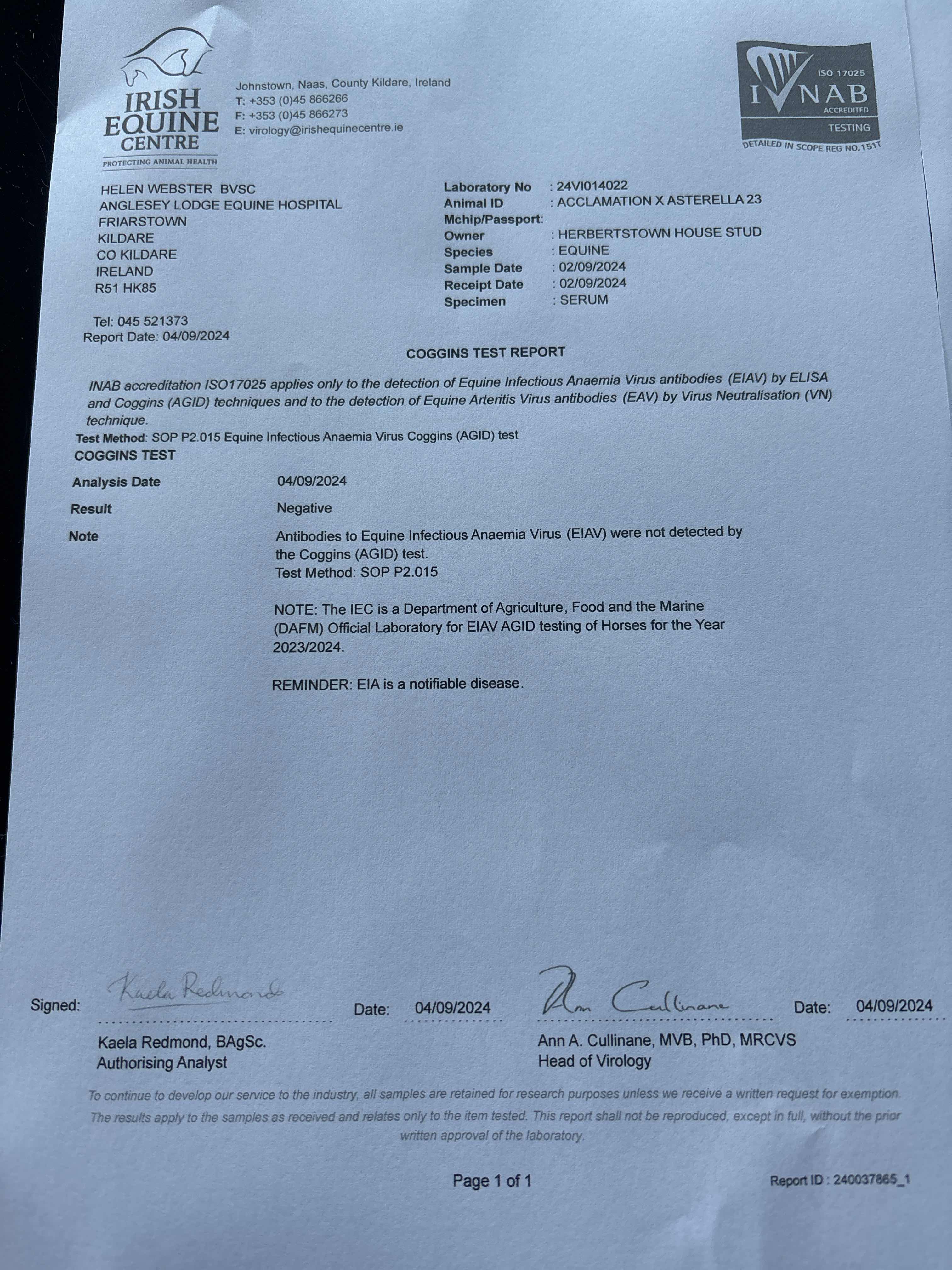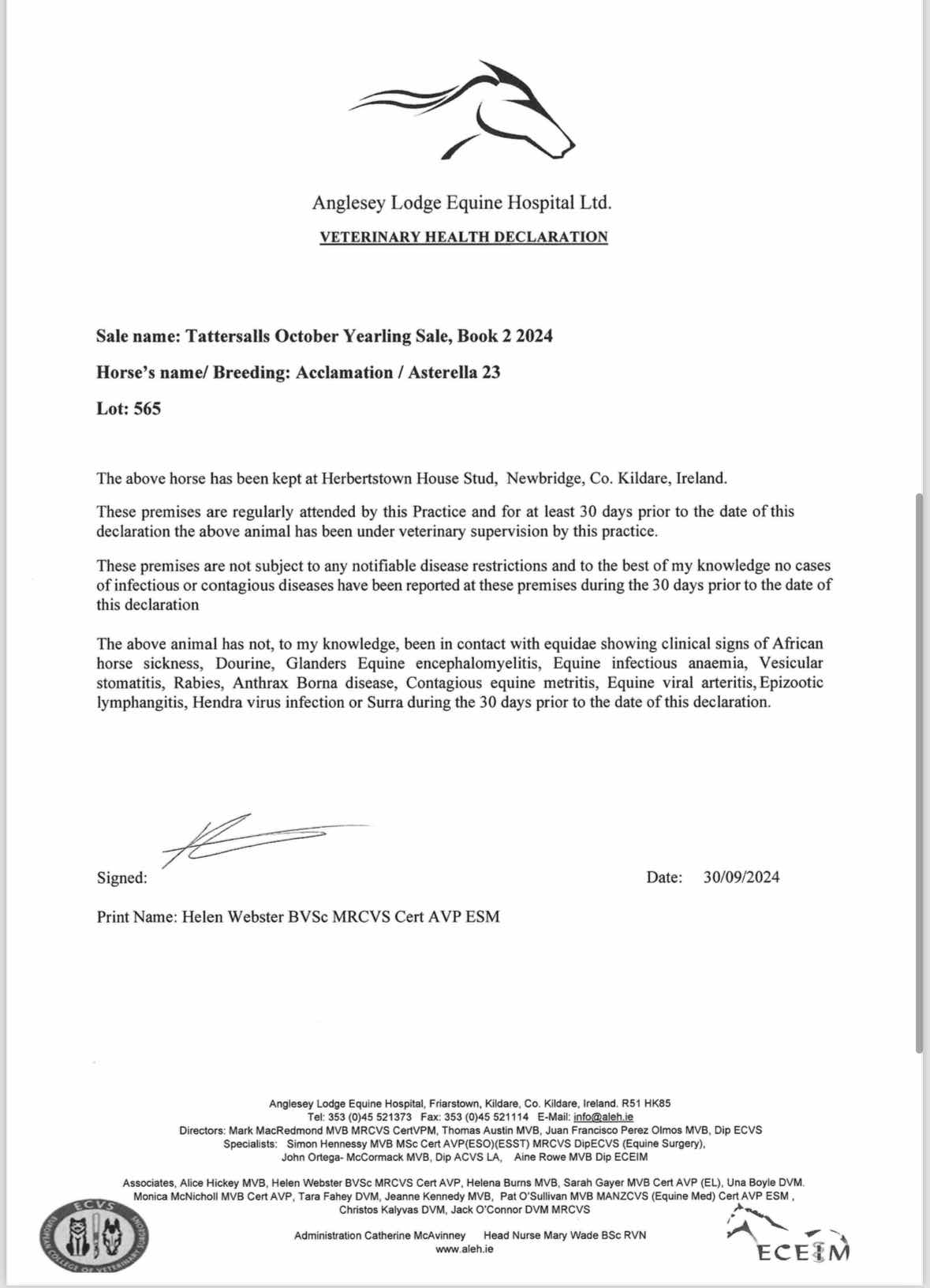 Consignor: Herbertstown House Stud (Co. Kildare), Ireland