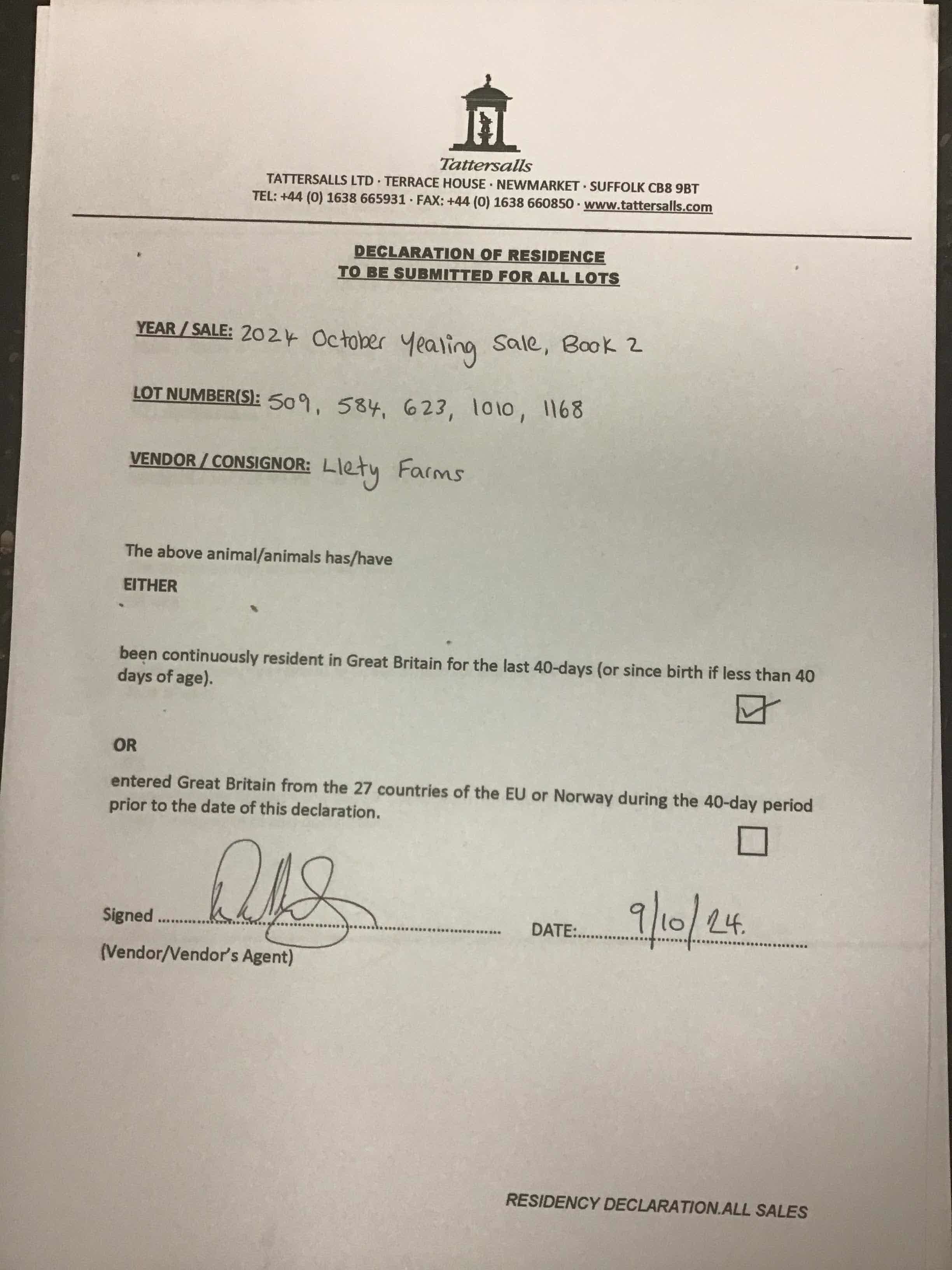 Consignor: Llety Farms