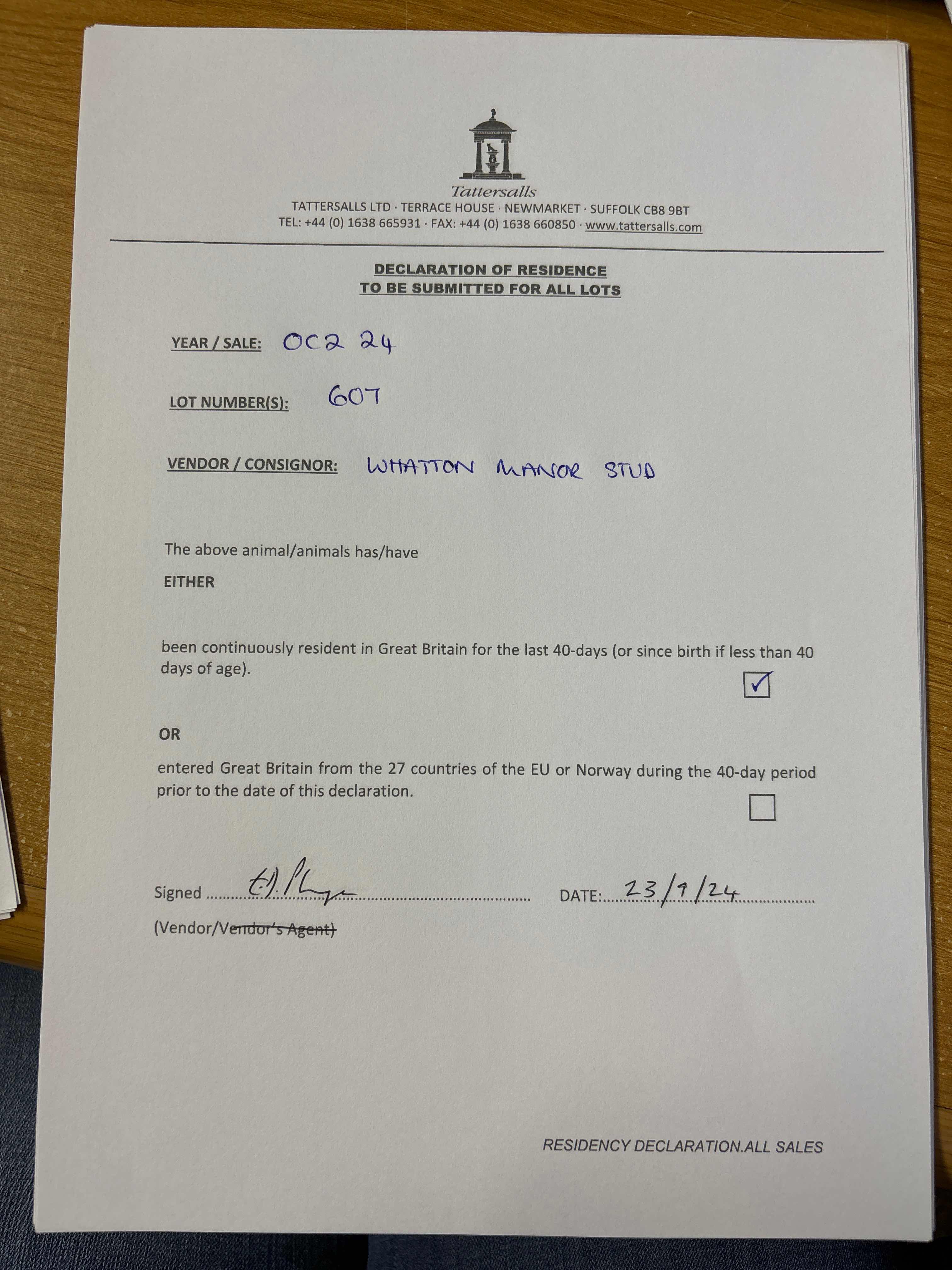 Consignor: Whatton Manor Stud