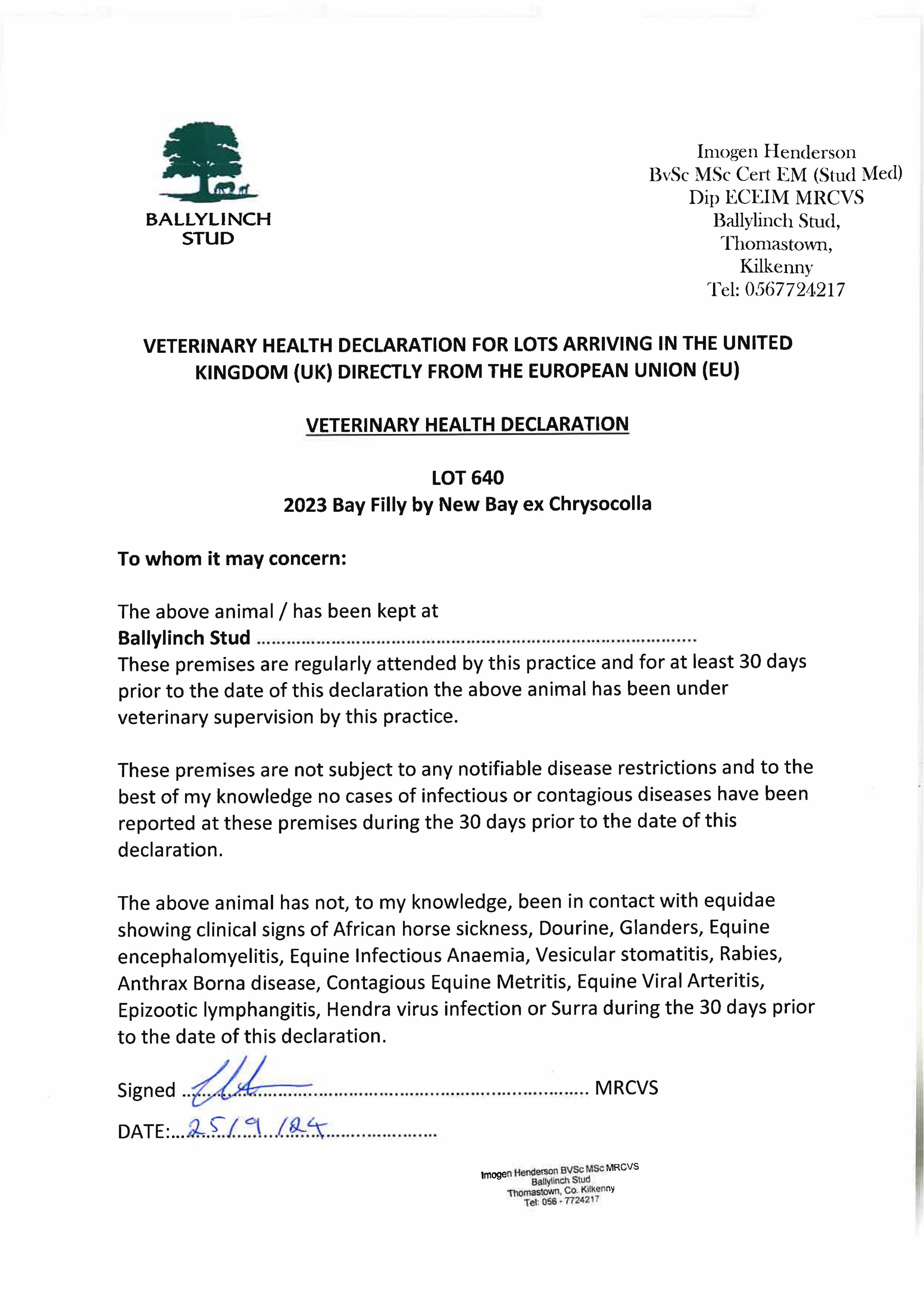 Consignor: Ballylinch Stud, Ireland