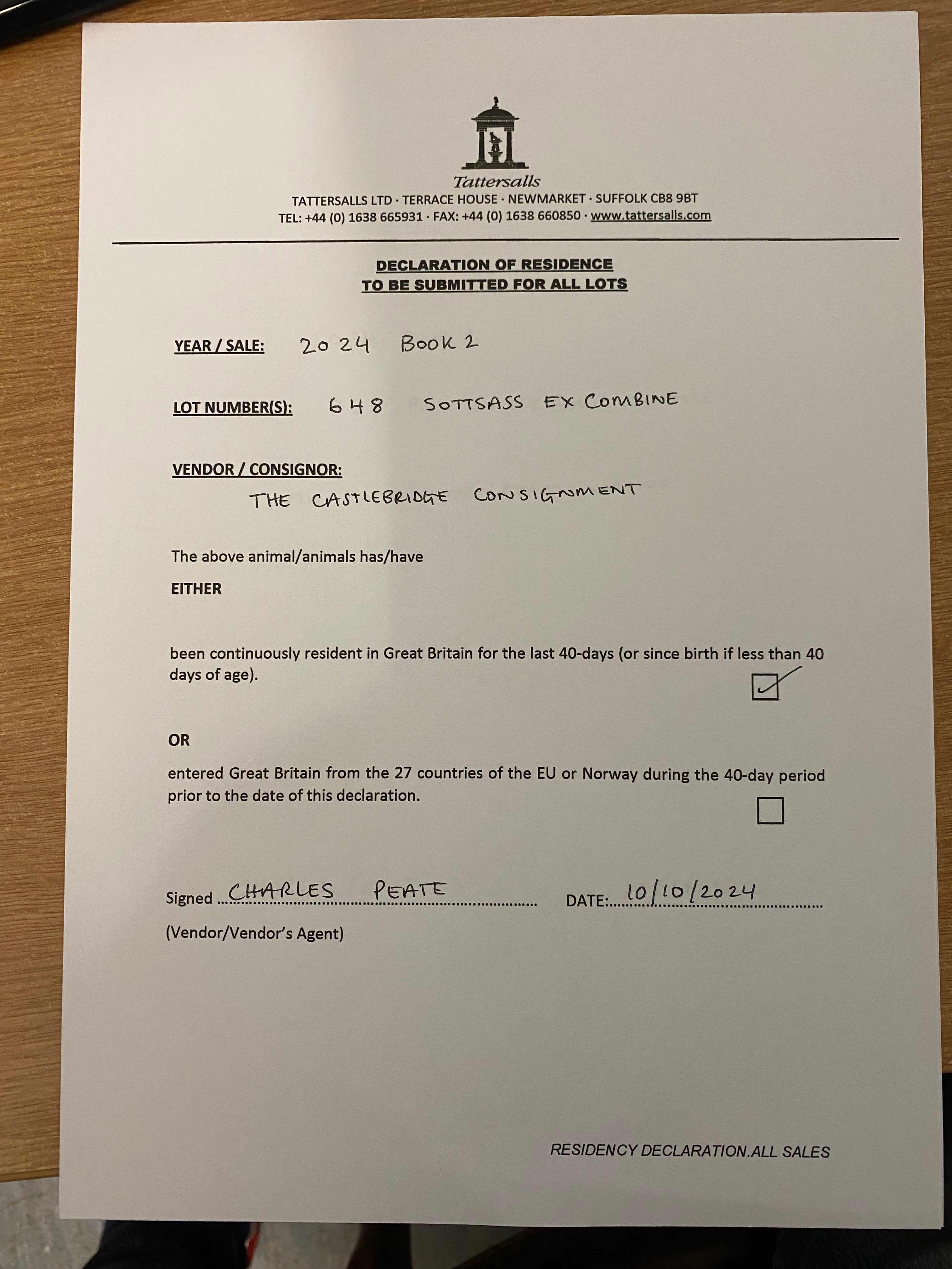 Consignor: The Castlebridge Consignment
