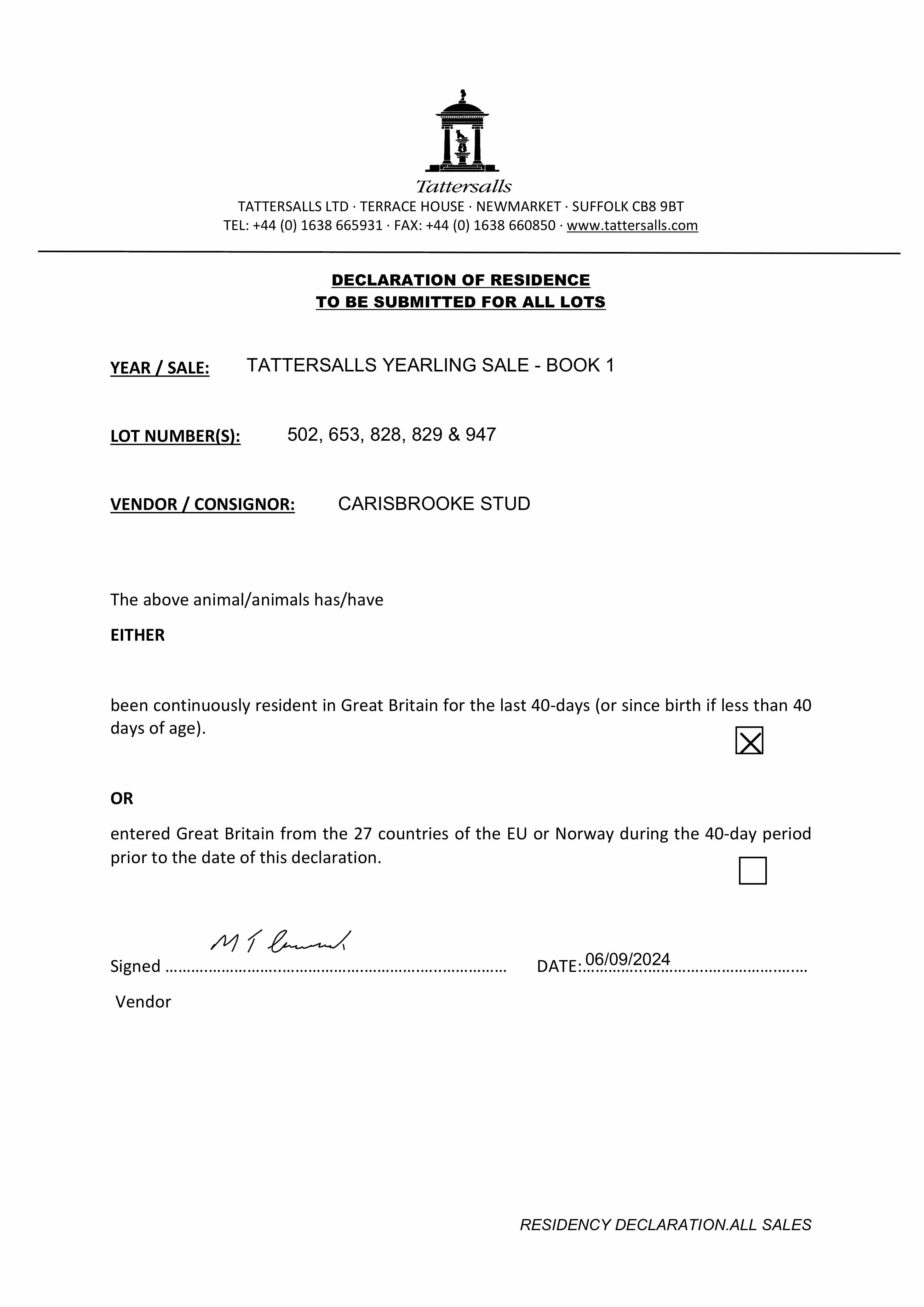 Consignor: Carisbrooke Stud