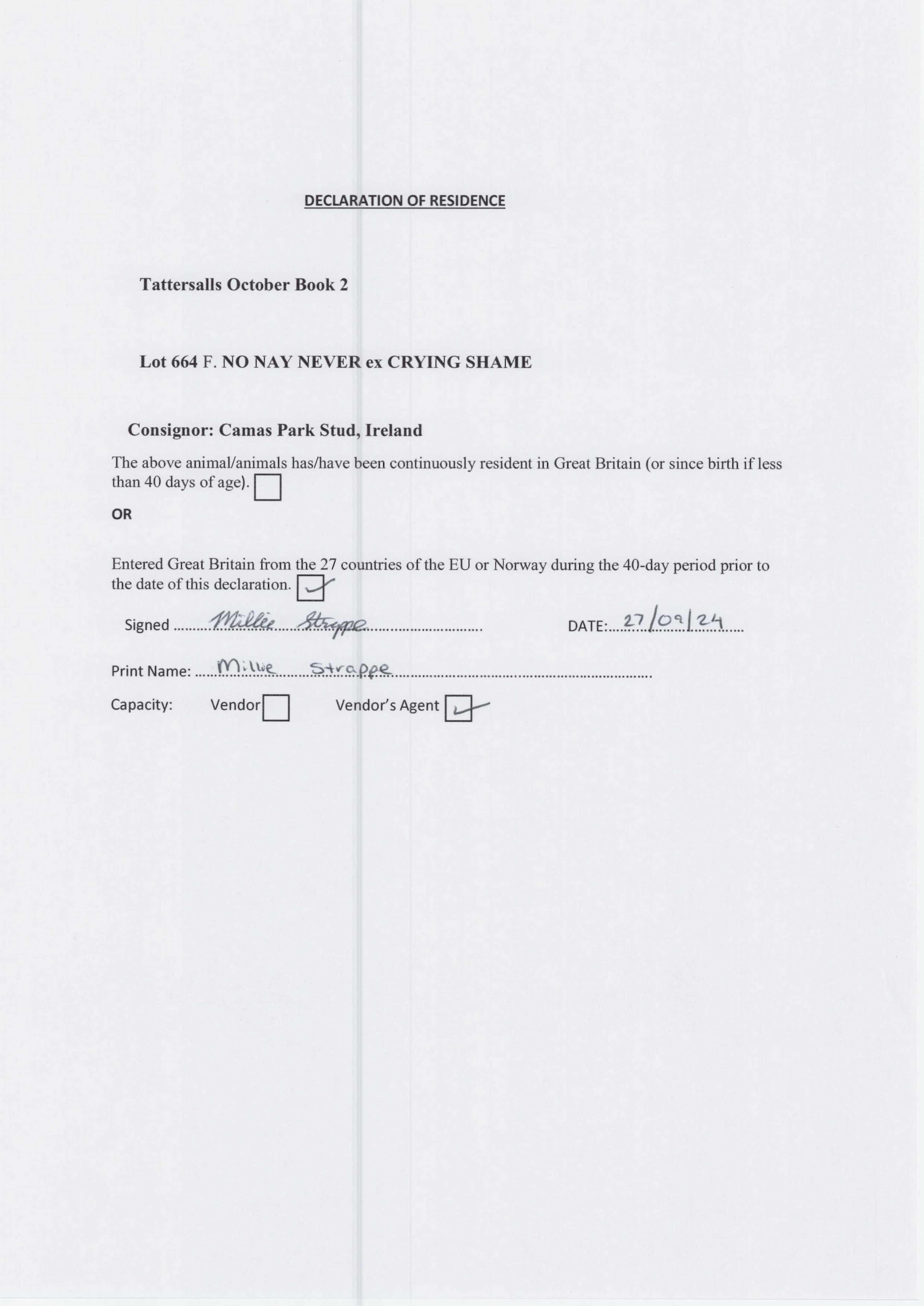 Consignor: Camas Park Stud, Ireland