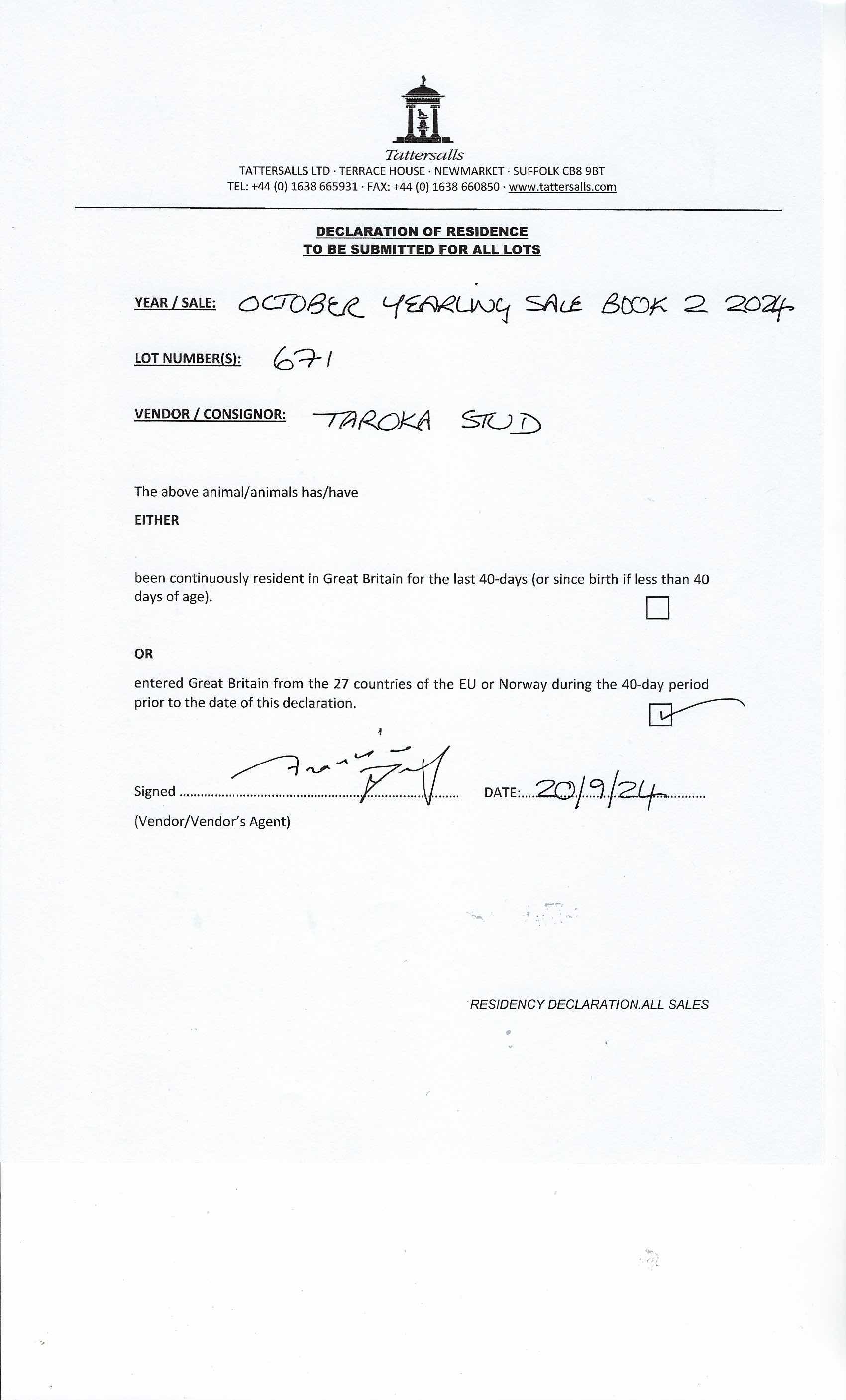 Consignor: Taroka Stud, Ireland