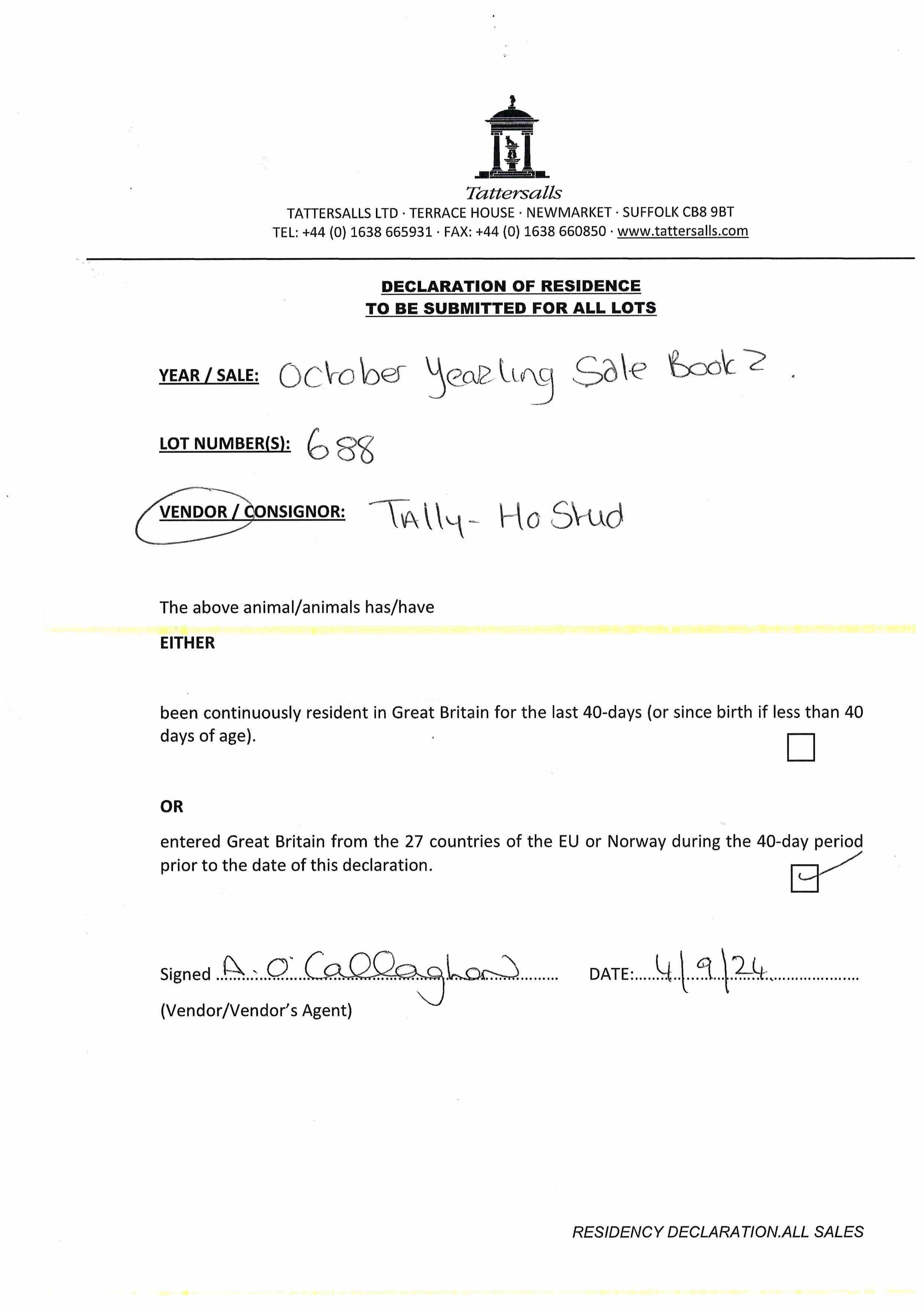 Consignor: Tally-Ho Stud, Ireland