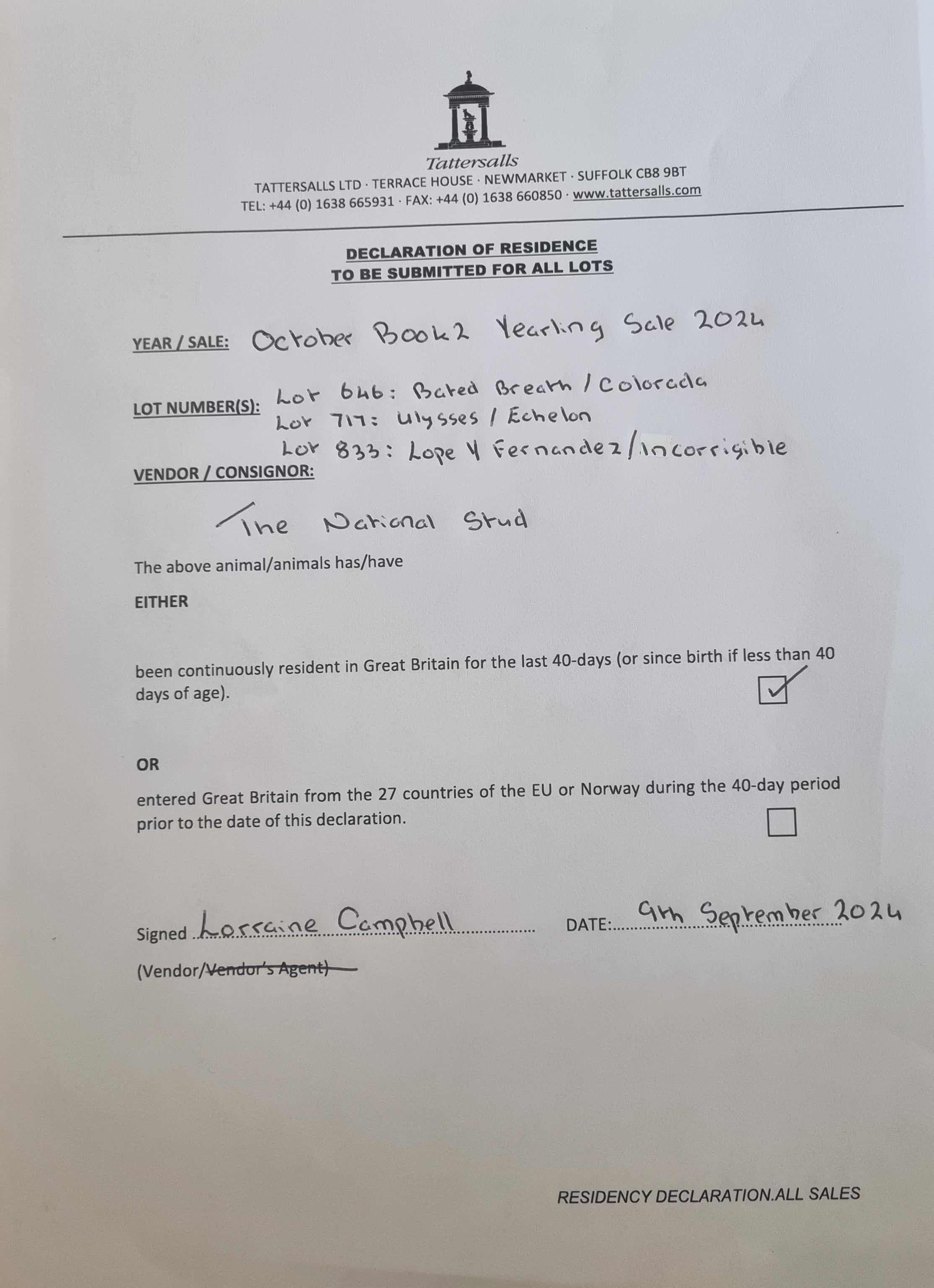 December Mare Sale 2024 lot 1346 Entity (GB) (M. by Shamardal (USA)), Cheveley Park Stud Ltd.=>Repole Stable, Inc. 45,000 gns