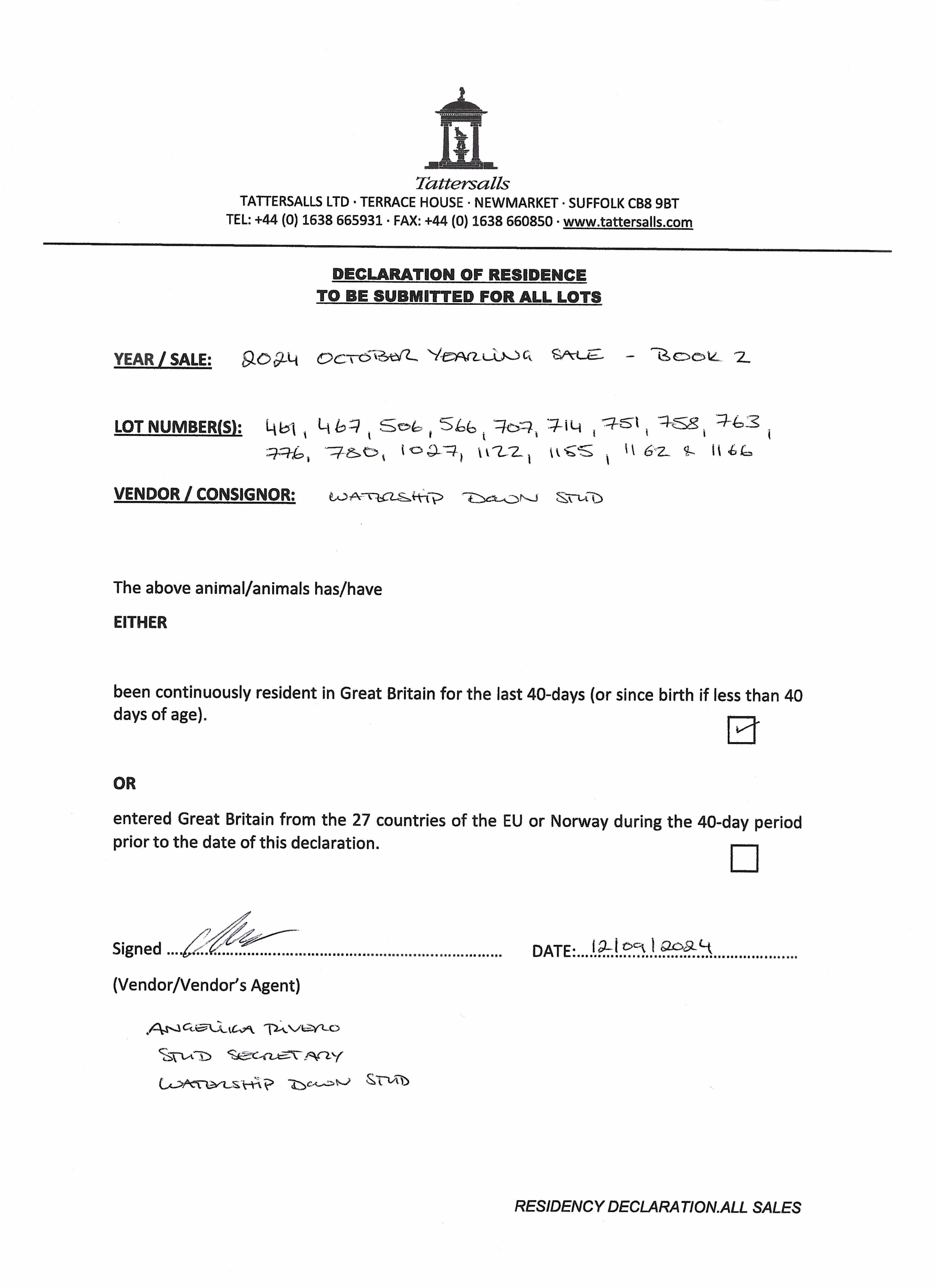 Consignor: Watership Down Stud