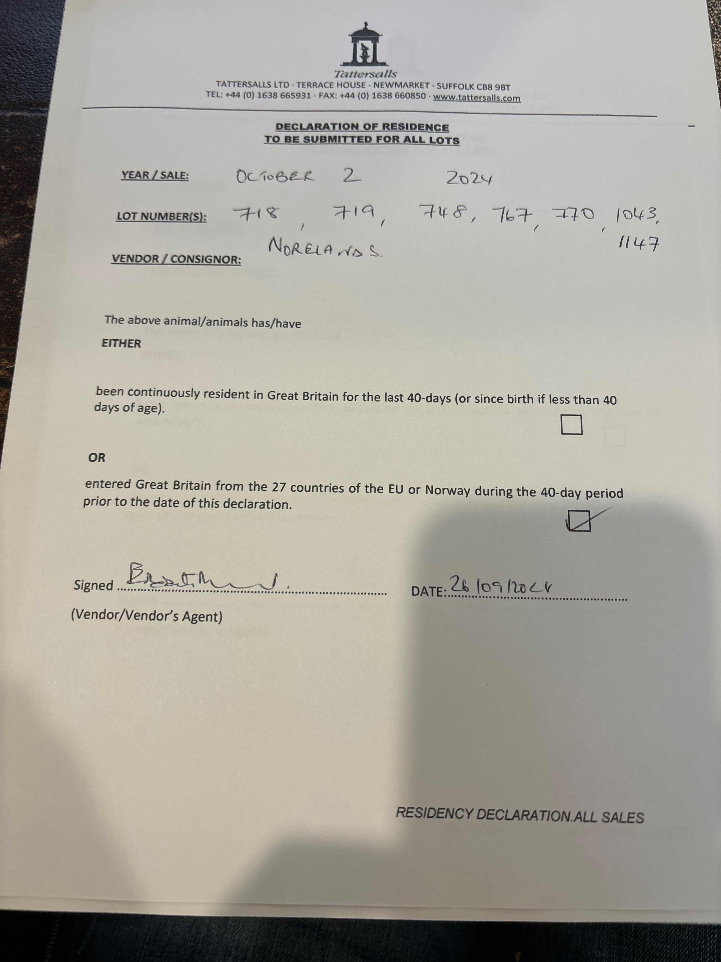 Consignor: Norelands, Ireland