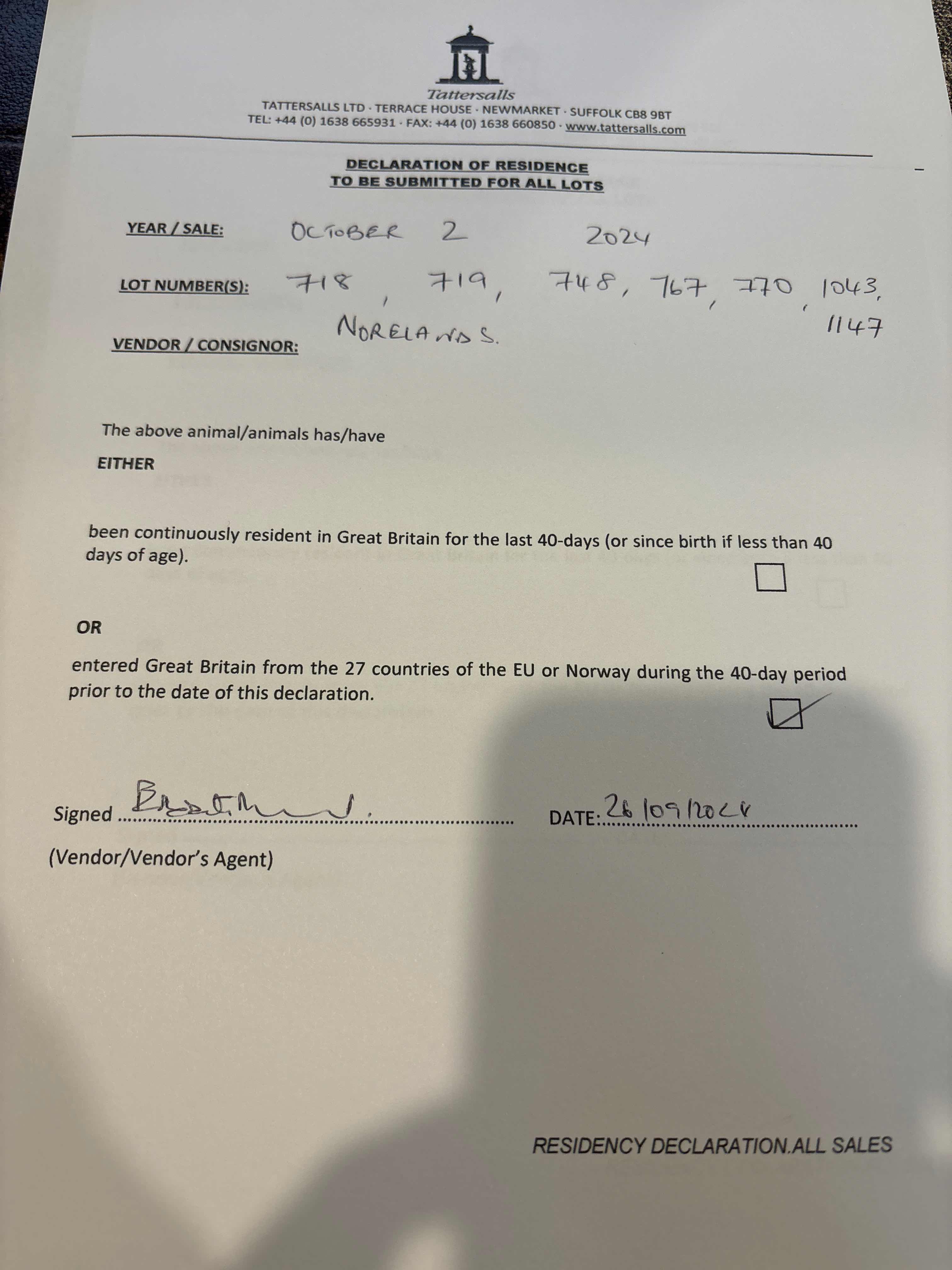 Consignor: Norelands, Ireland