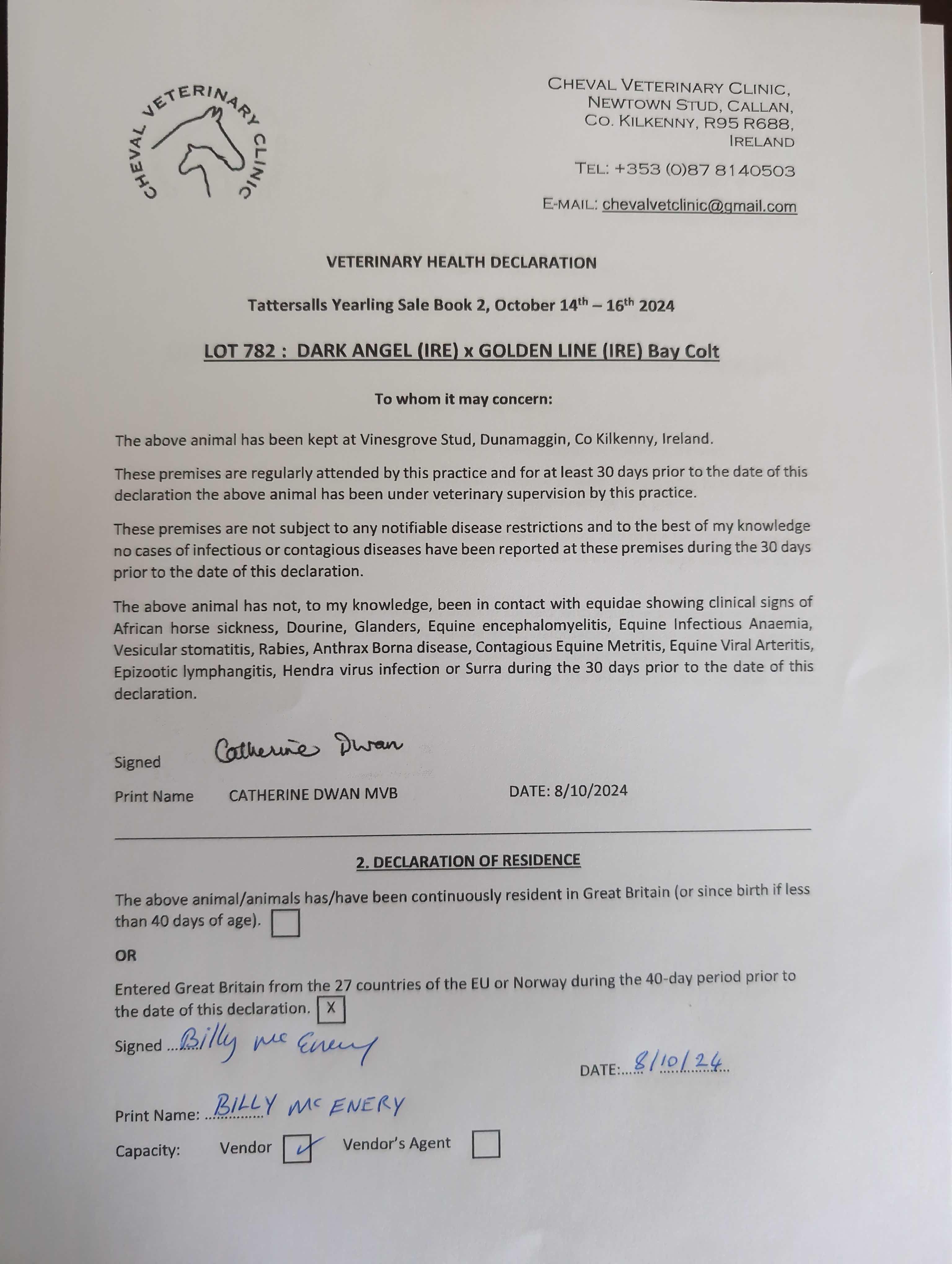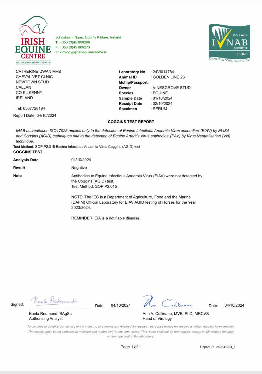 Consignor: Vinesgrove Stud, Ireland