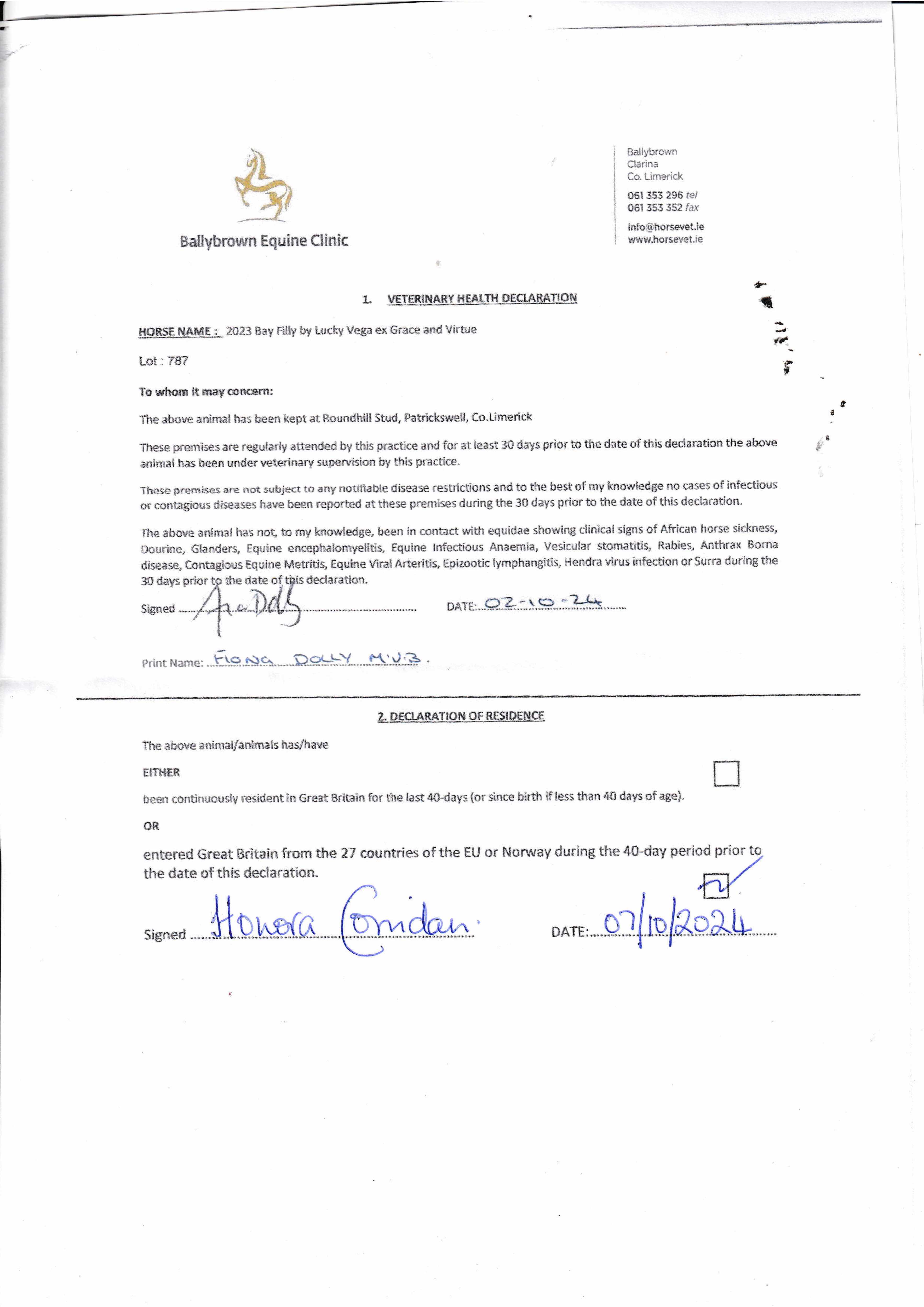Lot 787 Lucky Vega (IRE) /Grace And Virtue (IRE) B.F. (IRE)