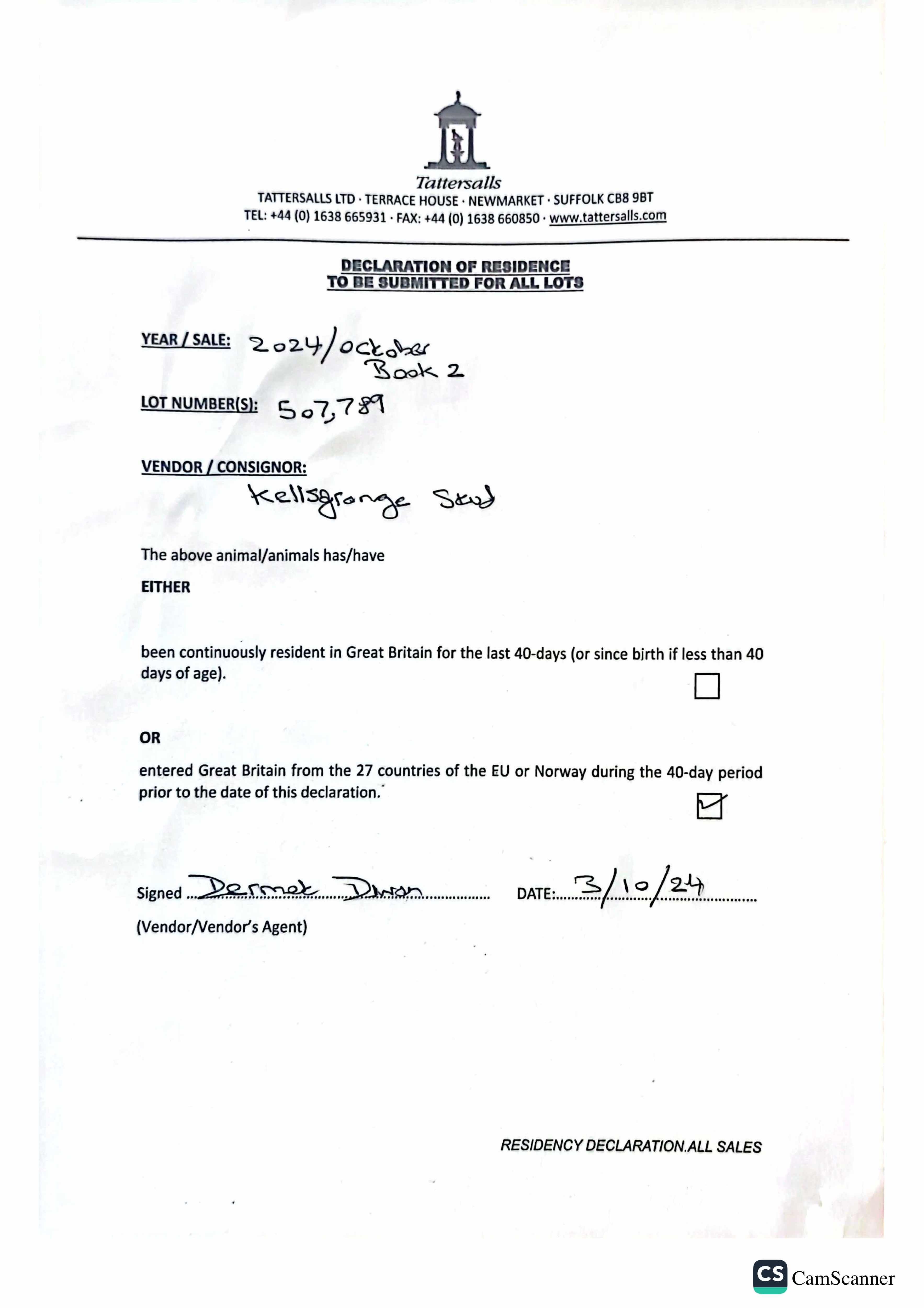 Consignor: Kellsgrange Stud, Ireland
