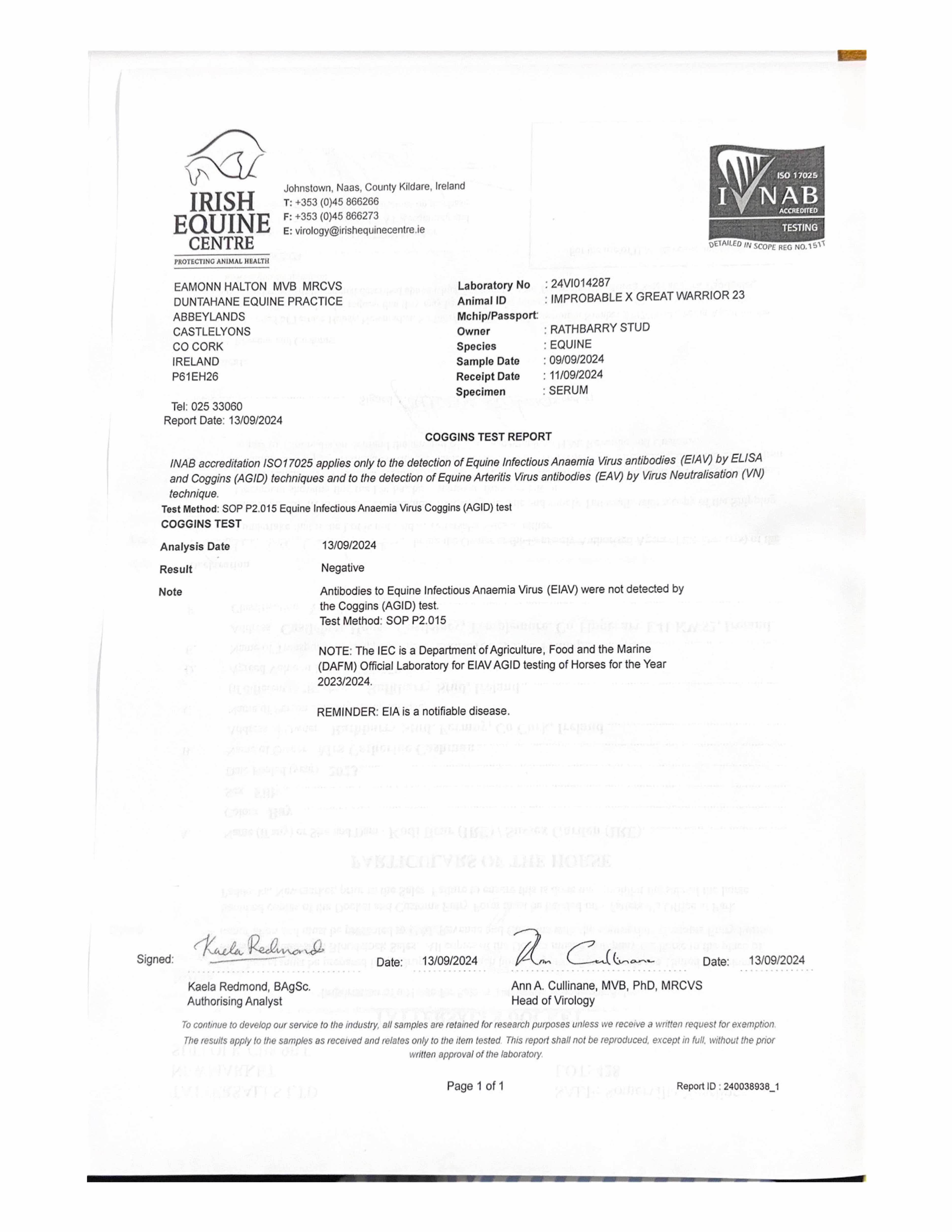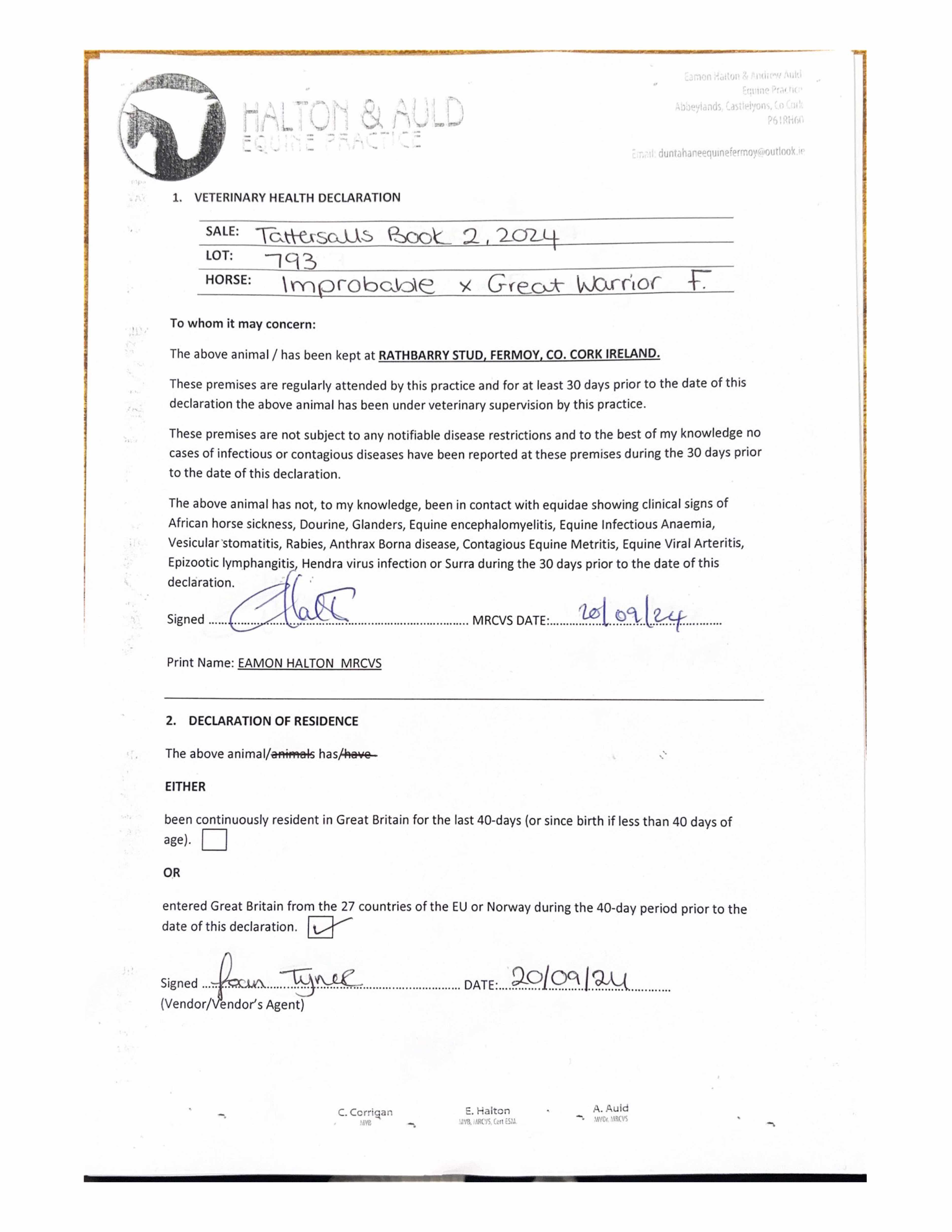 Consignor: Rathbarry Stud, Ireland