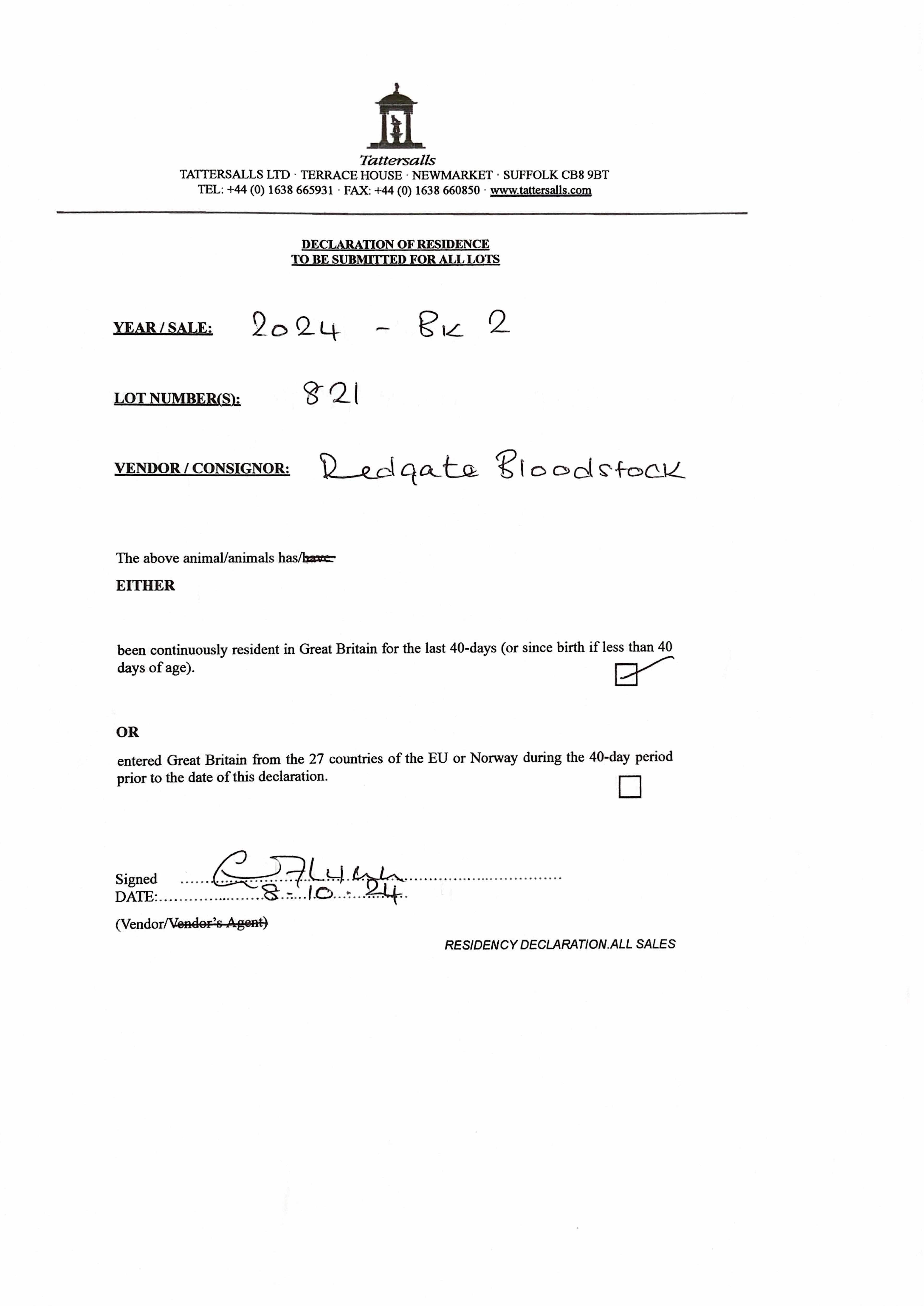 Consignor: Redgate Bloodstock Ltd.
