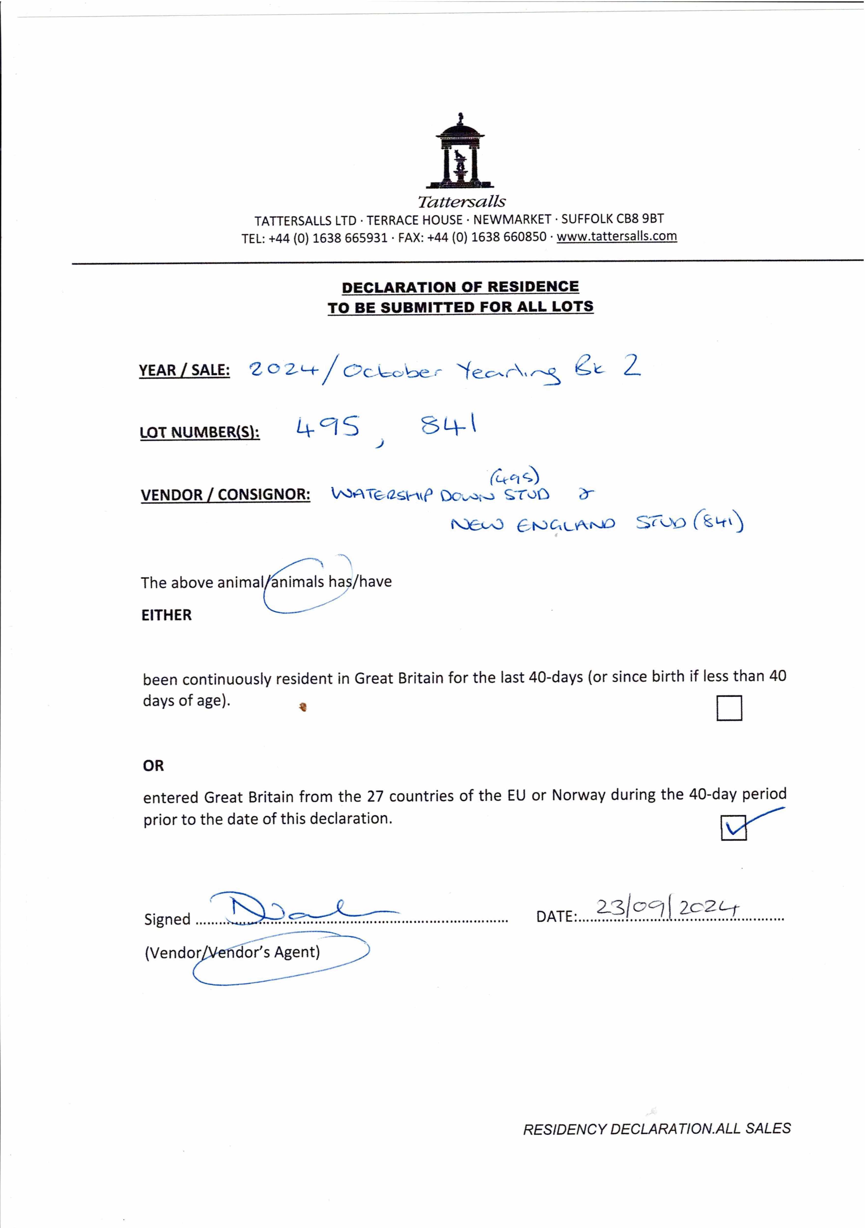 October Yearling Sale, Book 2 2023 lot 1185 F. by Night of Thunder (IRE) 2022, New England Stud=>David Fitzgerald 28,000 gns