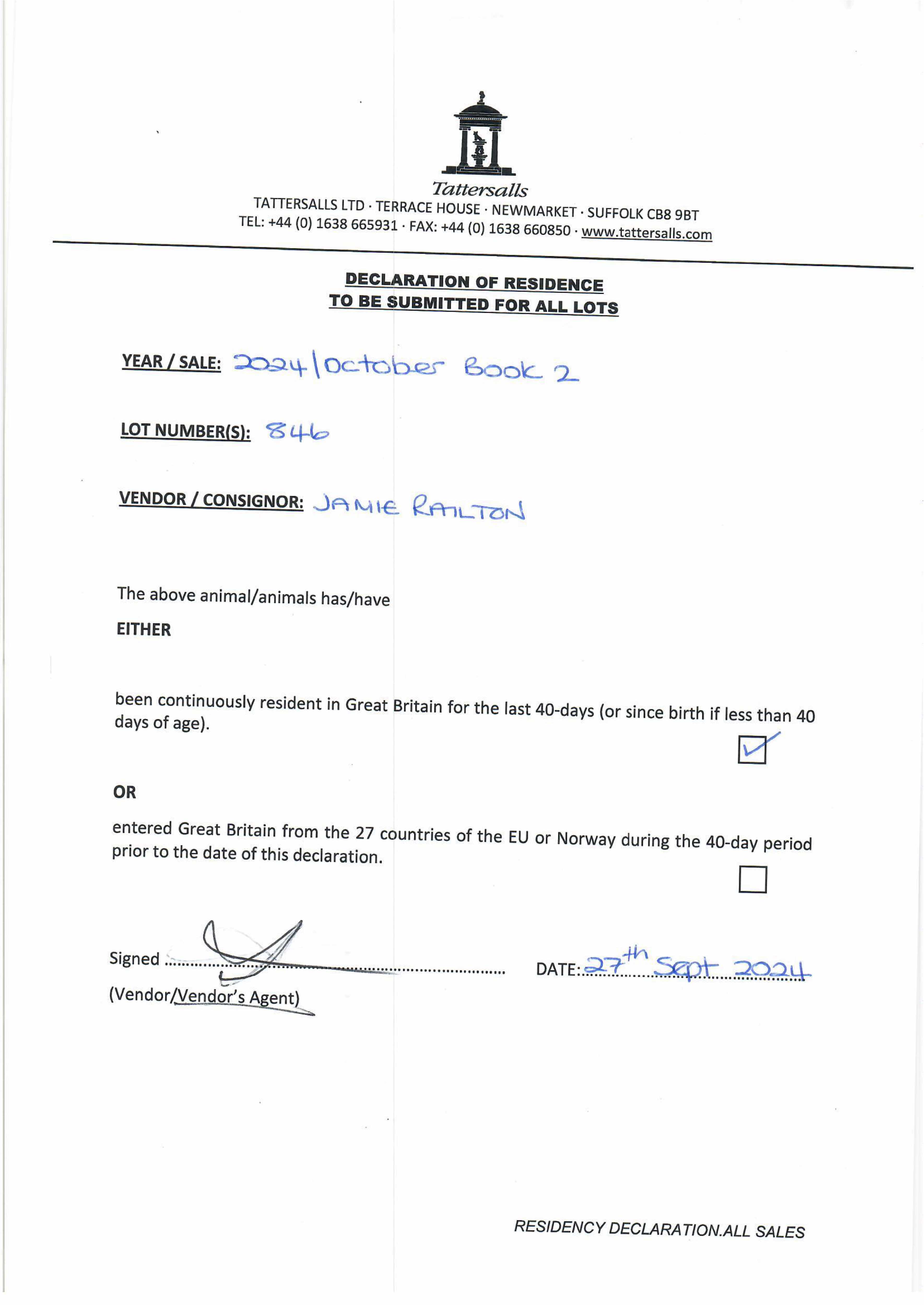 Consignor: Jamie Railton (Agent)