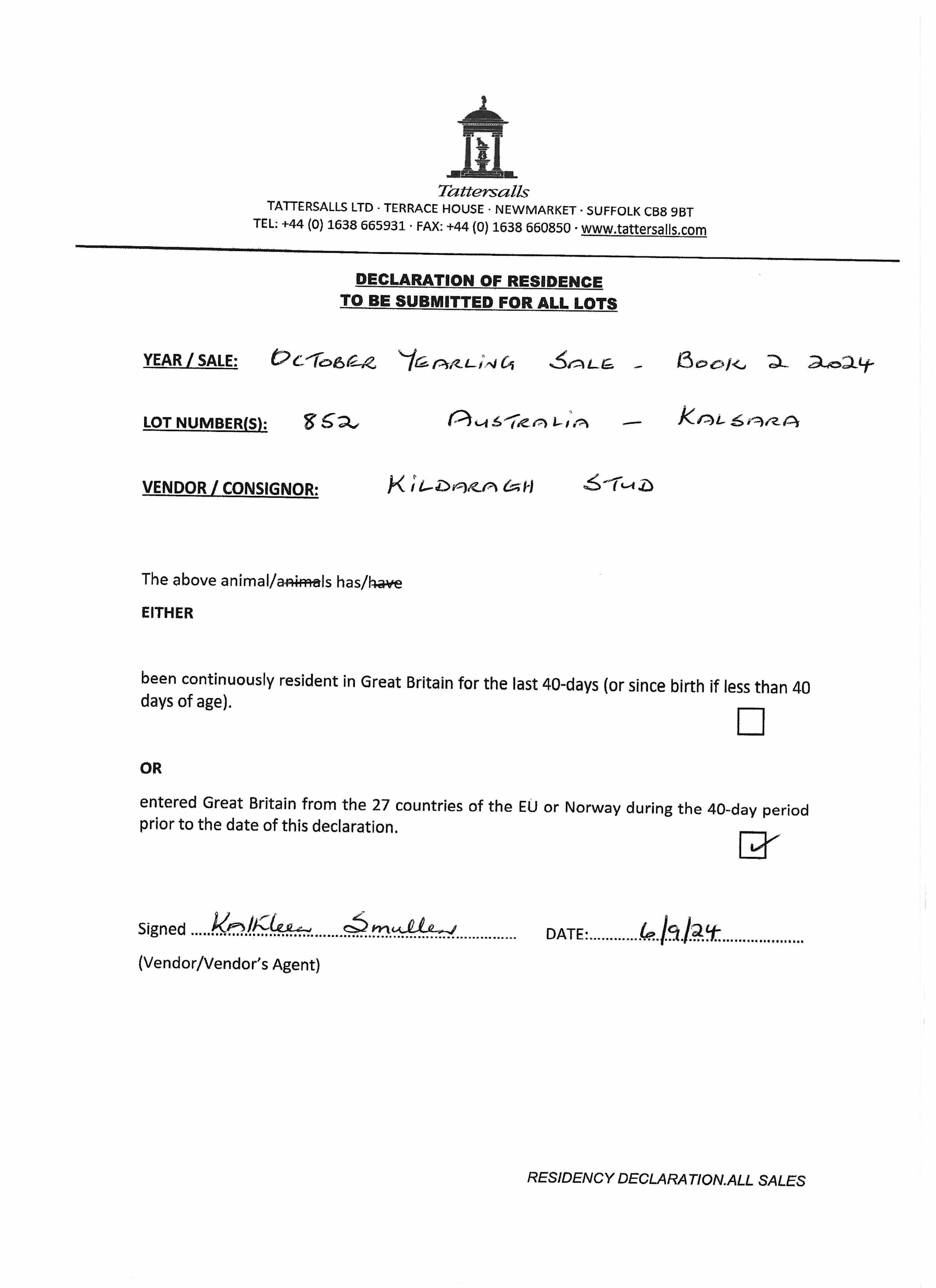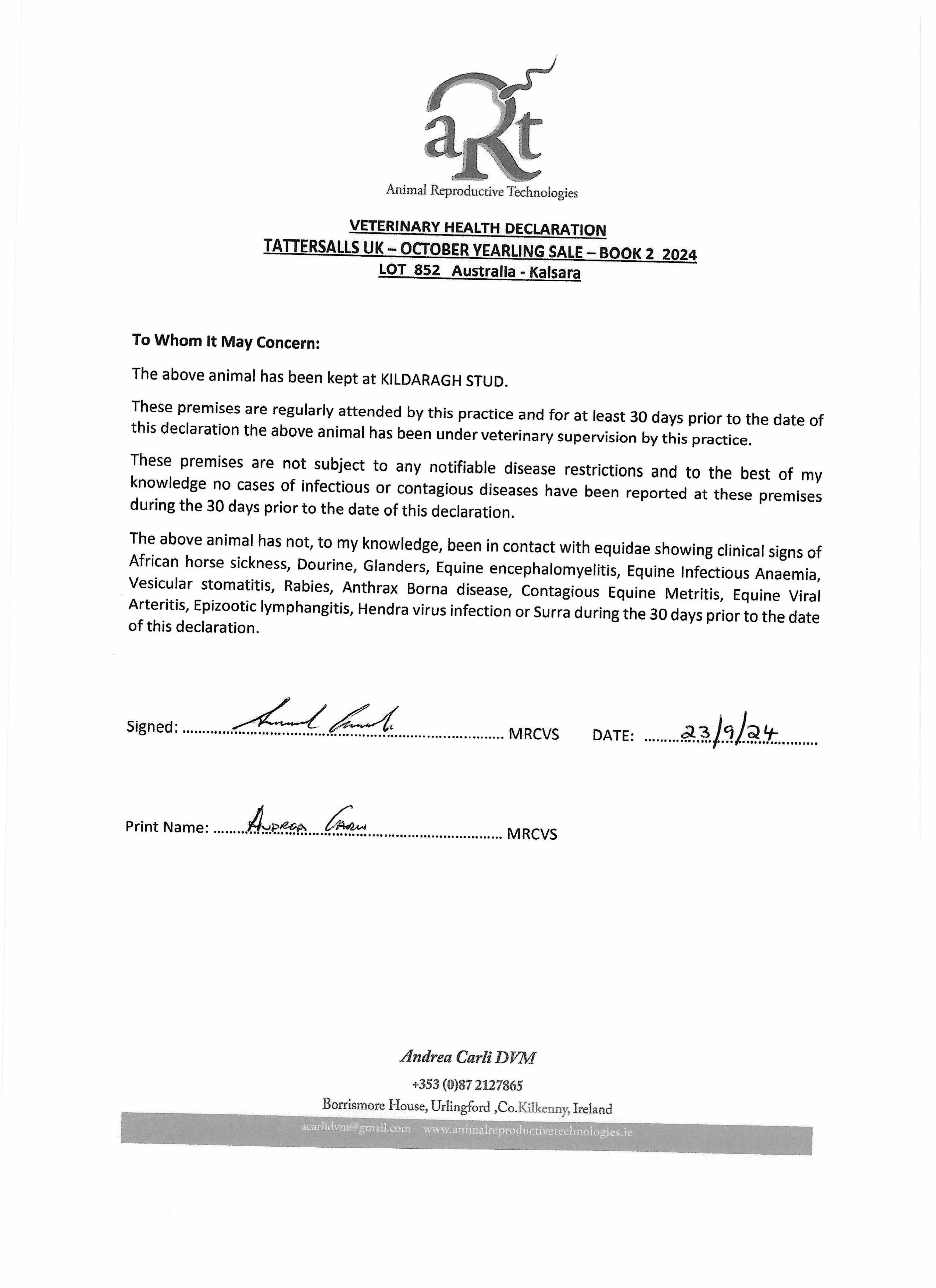 Consignor: Kildaragh Stud, Ireland (Agent)