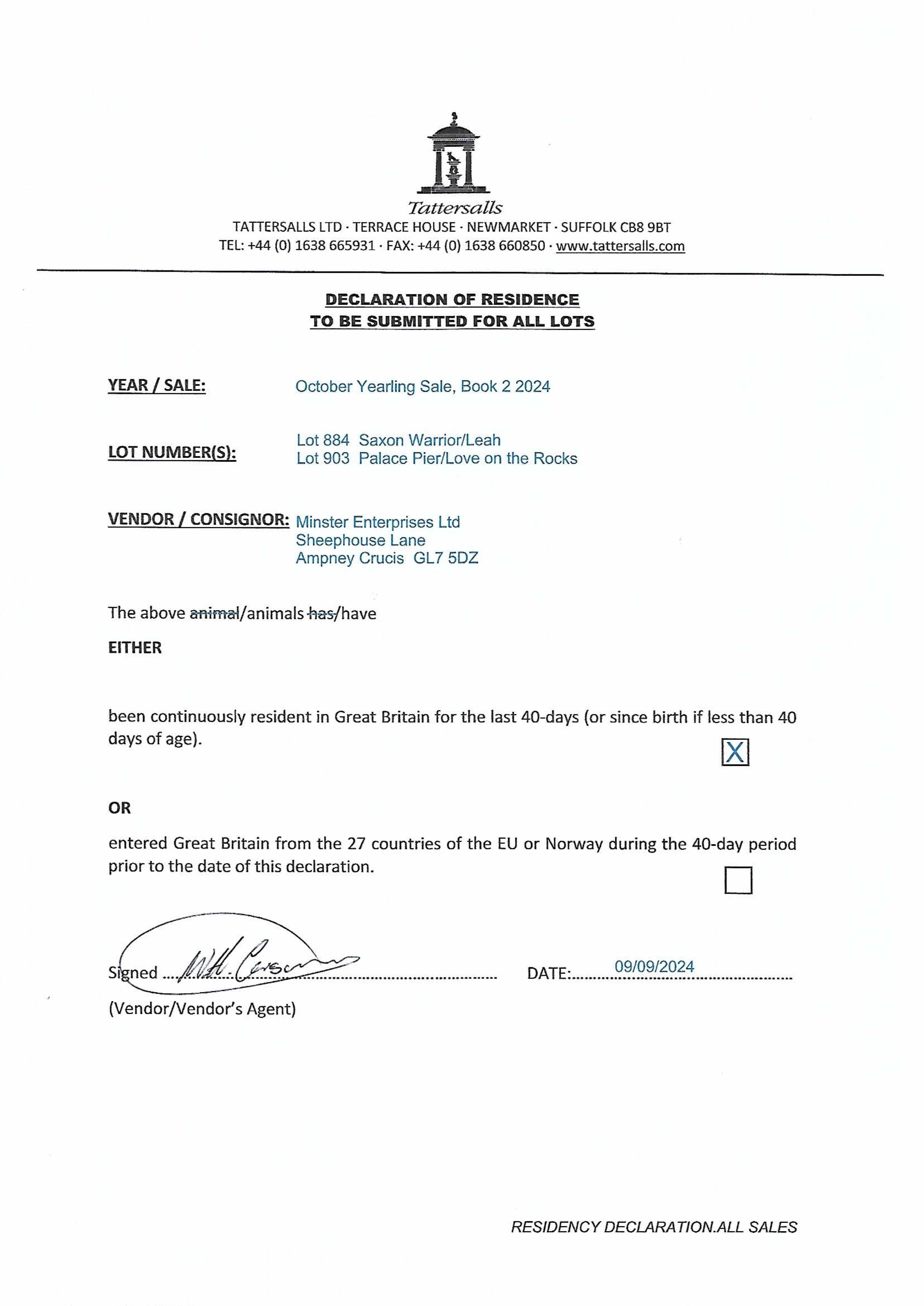 Contact: Mr W Carson ✆ 07503659506 ✉ info@minsterstud.co.uk