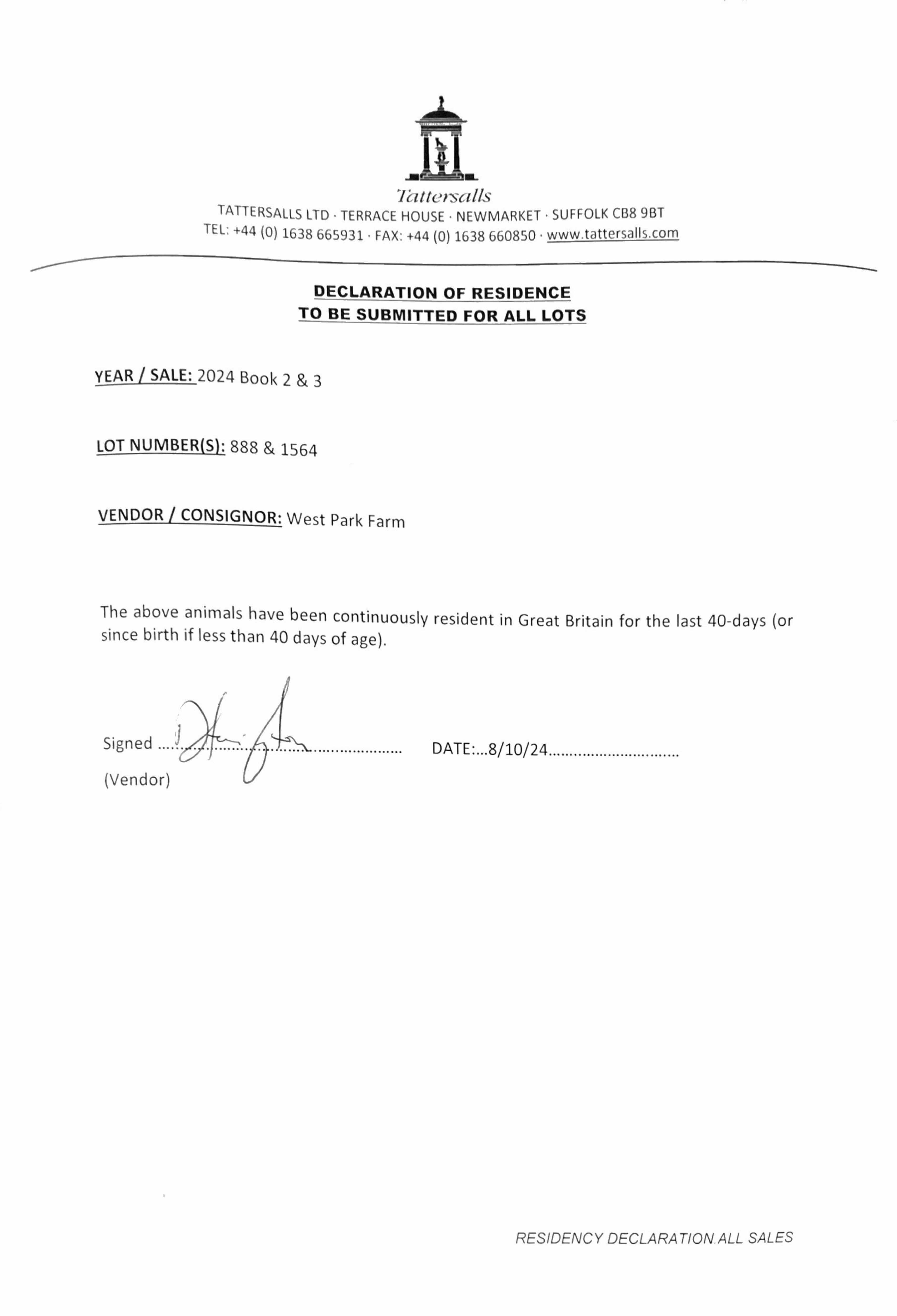Consignor: West Park Farm