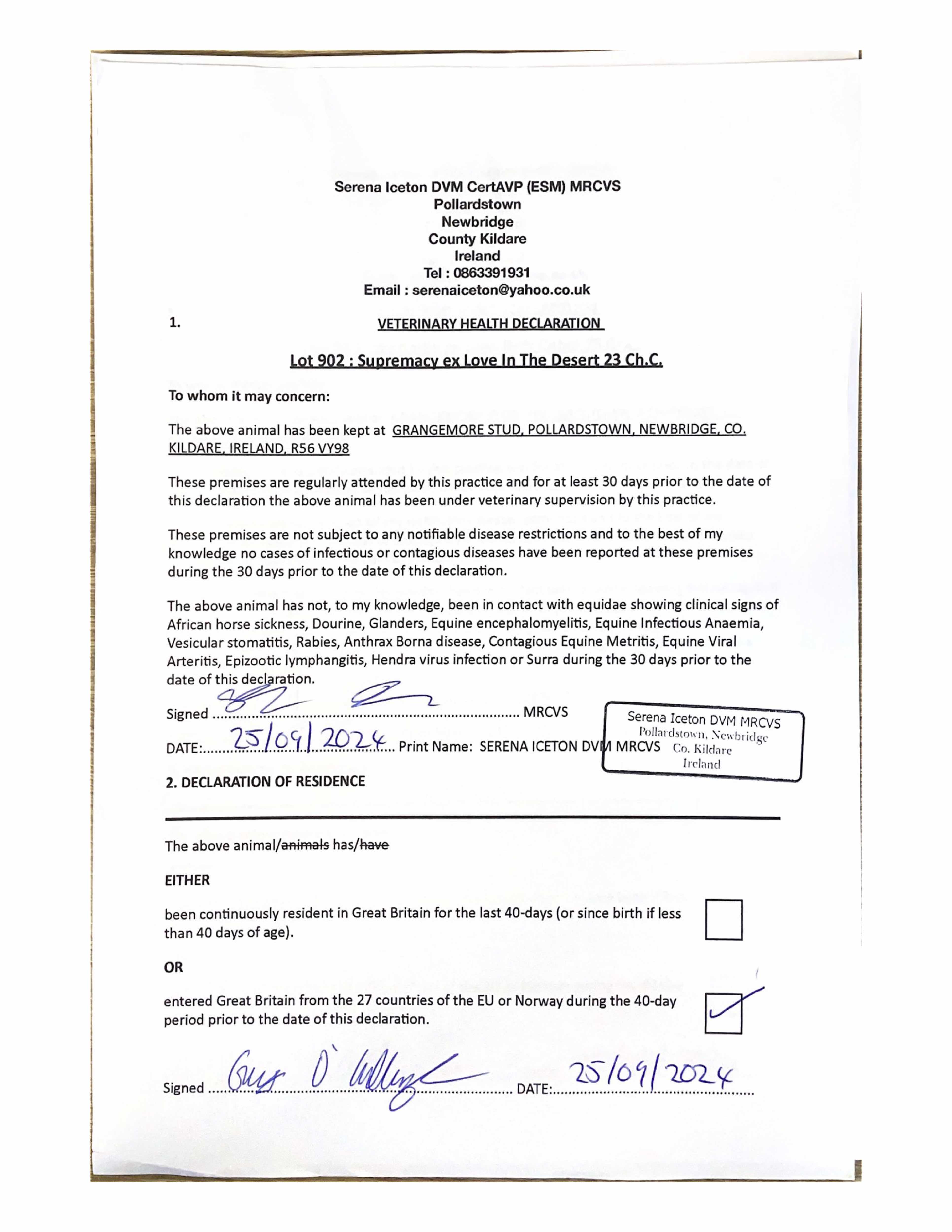 Consignor: Grangemore Stud, Ireland