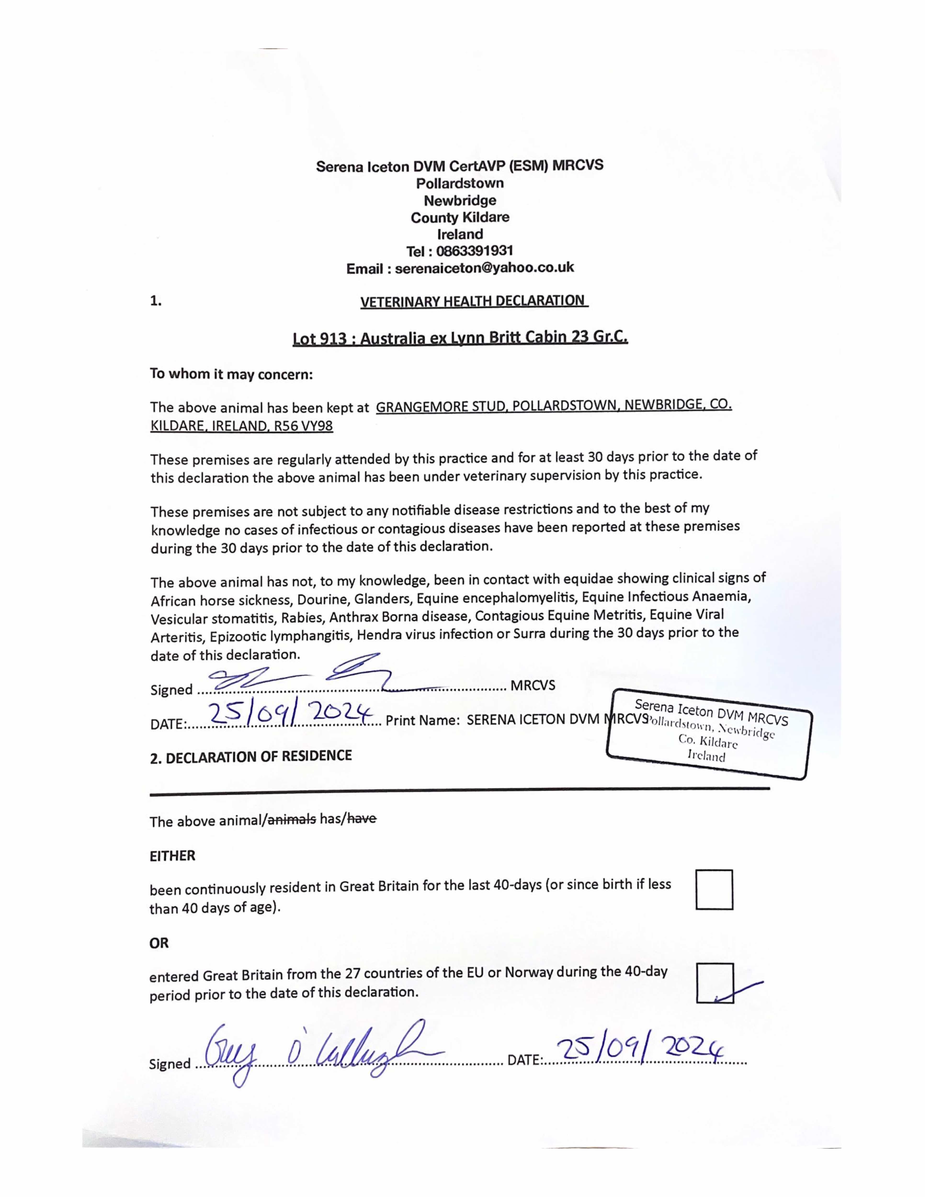 Consignor: Grangemore Stud, Ireland