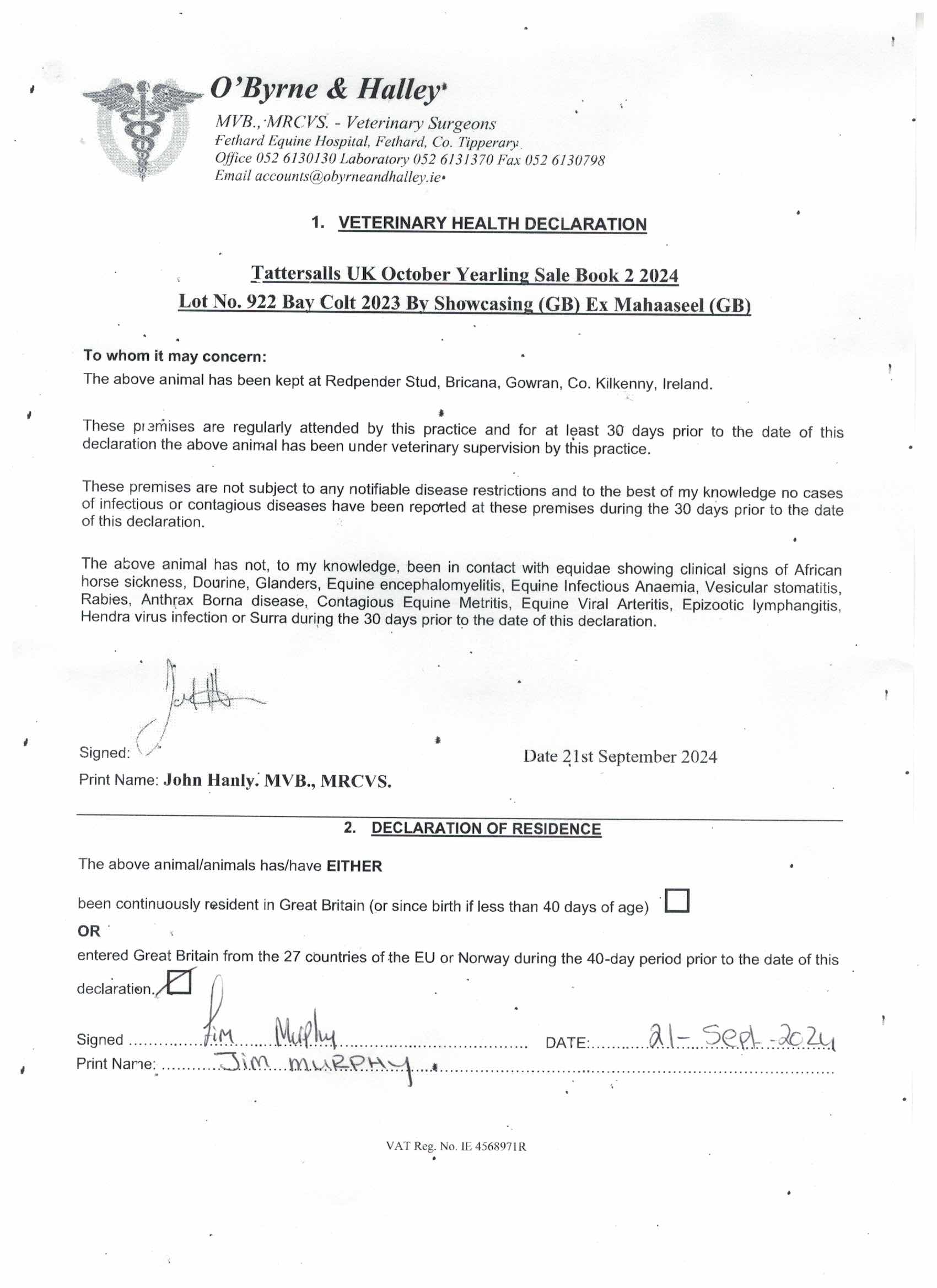 Consignor: Redpender Stud, Ireland