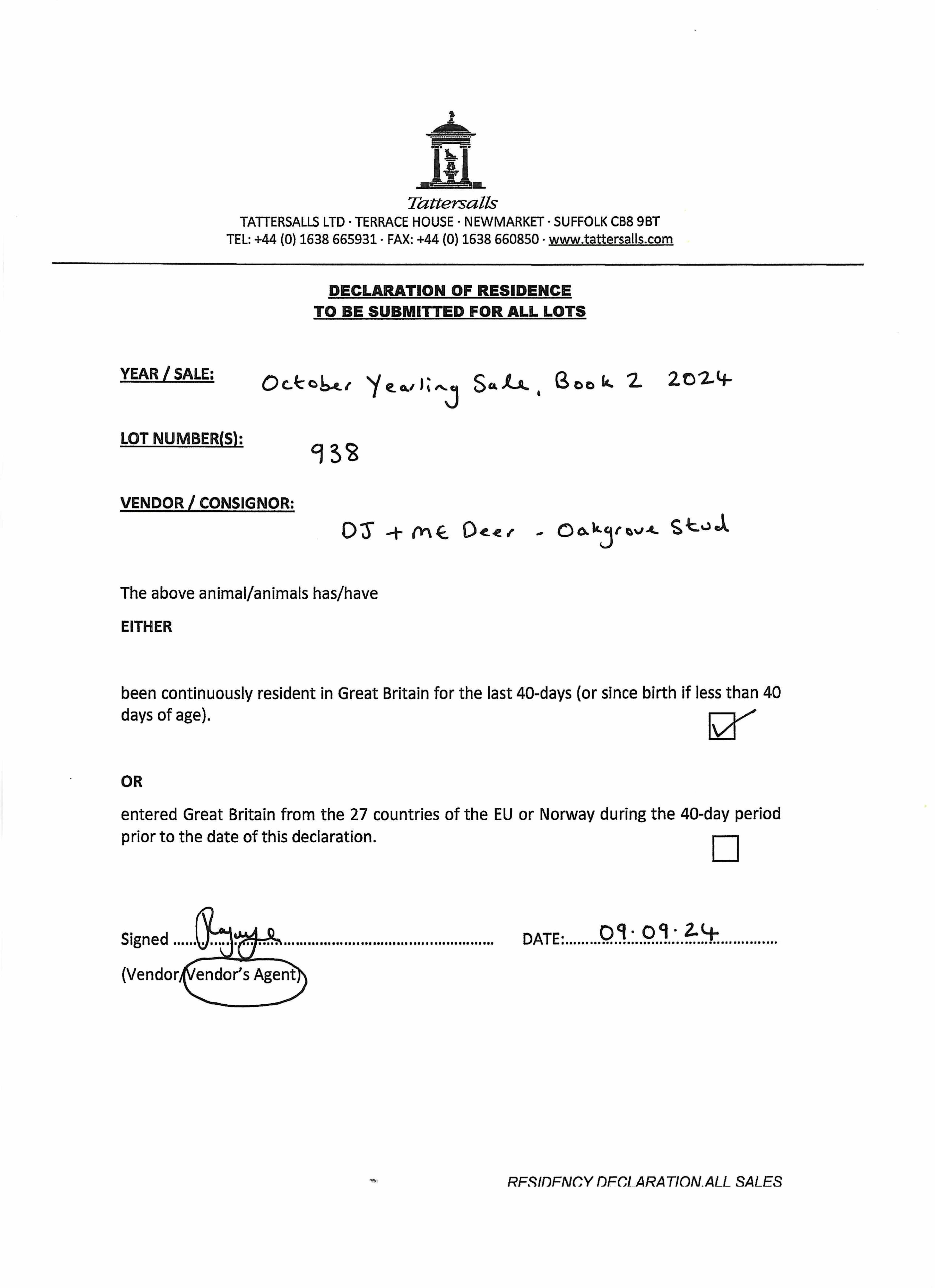 October Yearling Sale, Book 3 2025 lot 1516 C. by Saxon Warrior (JPN) 2024, Oakgrove Stud=>Vendor 15,000 gns