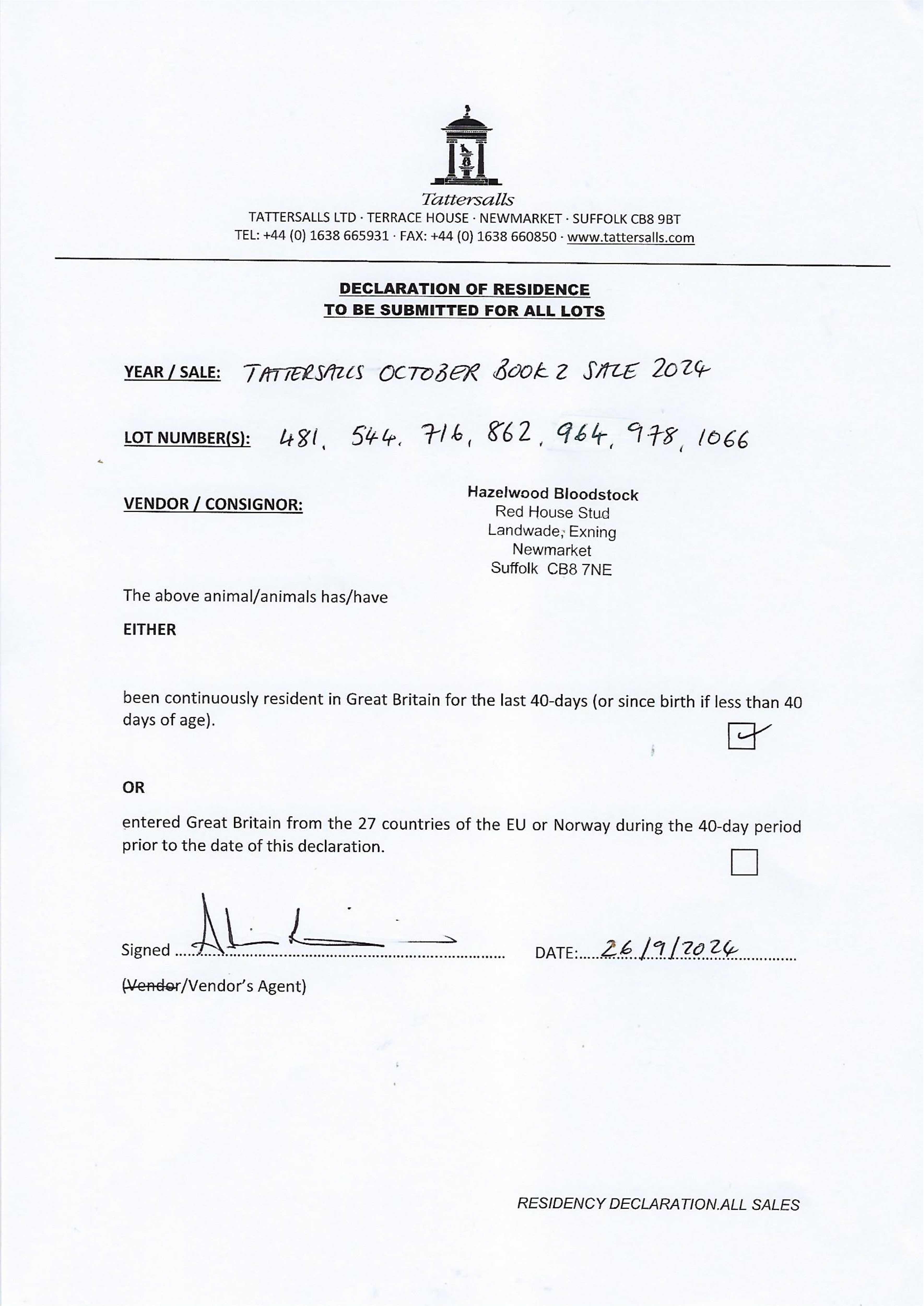 Contact: Adrian O'Brien ✆ 07468456488 ✉ adrian@hazelwoodbloodstock.co.uk
