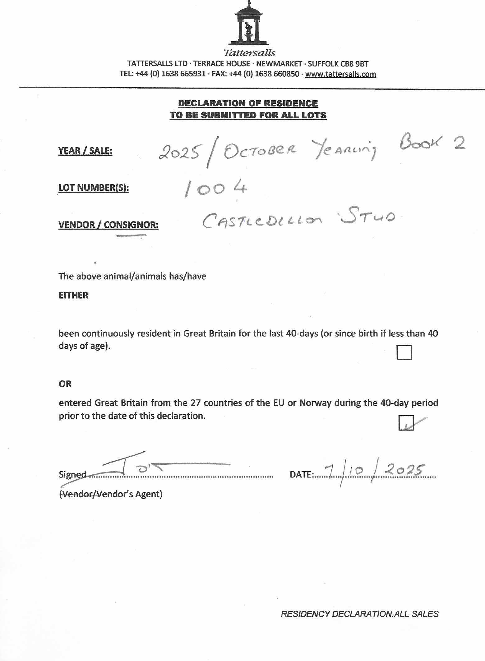 Consignor: Castledillon Stud, Ireland (Agent)