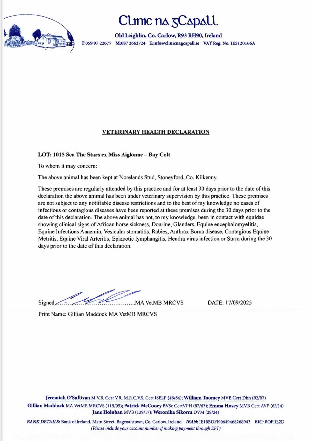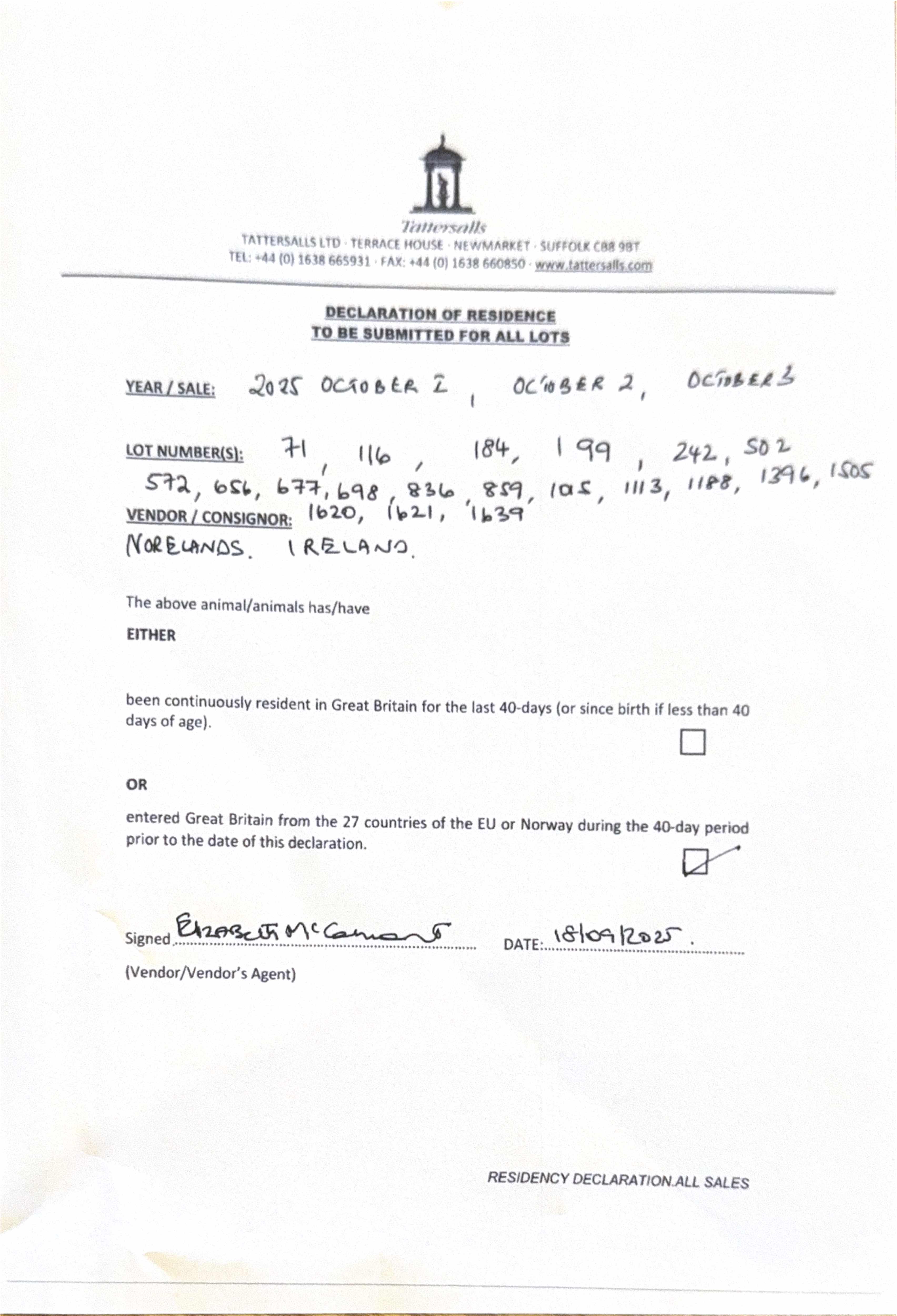 Consignor: Norelands, Ireland