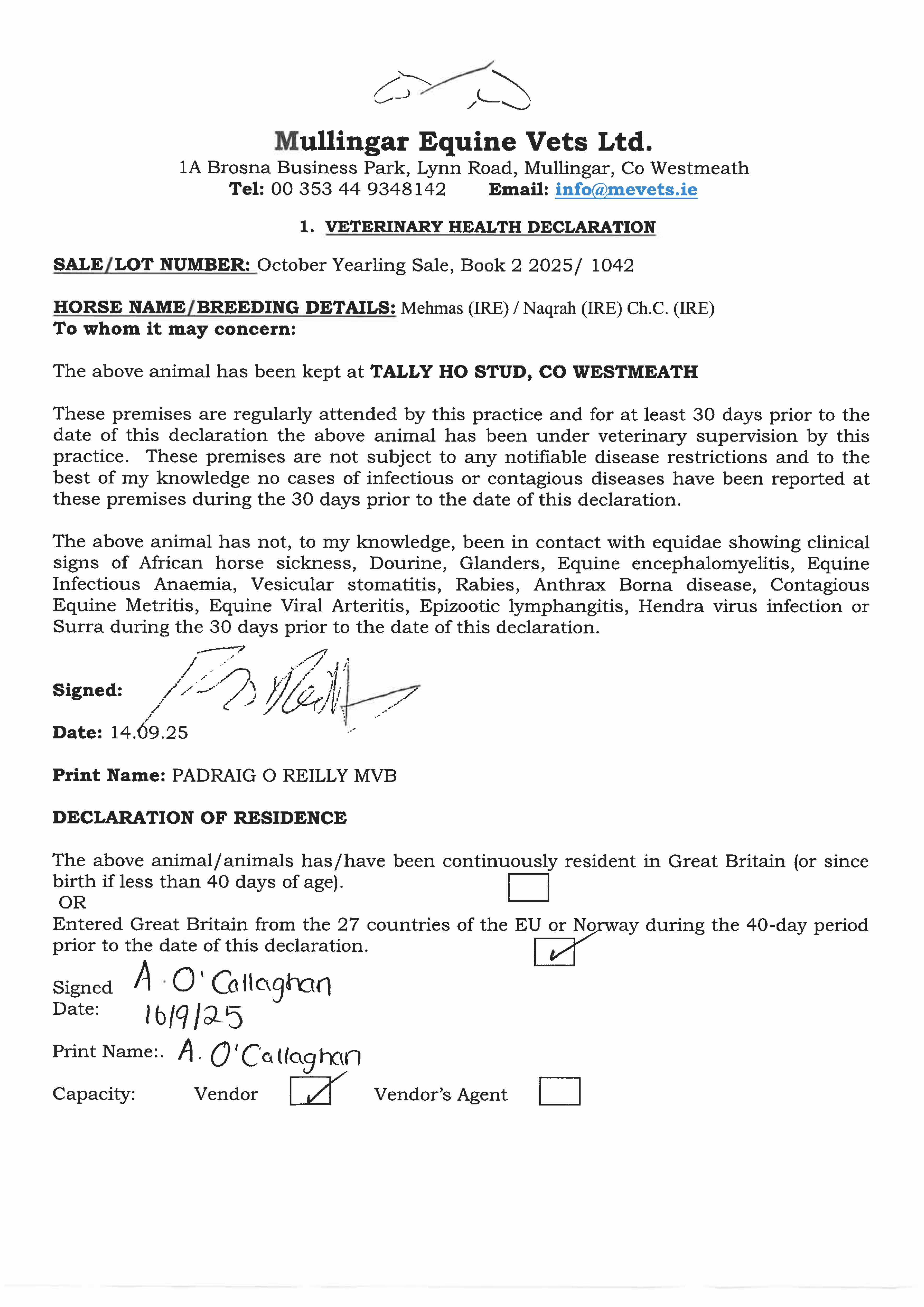 Consignor: Tally-Ho Stud, Ireland
