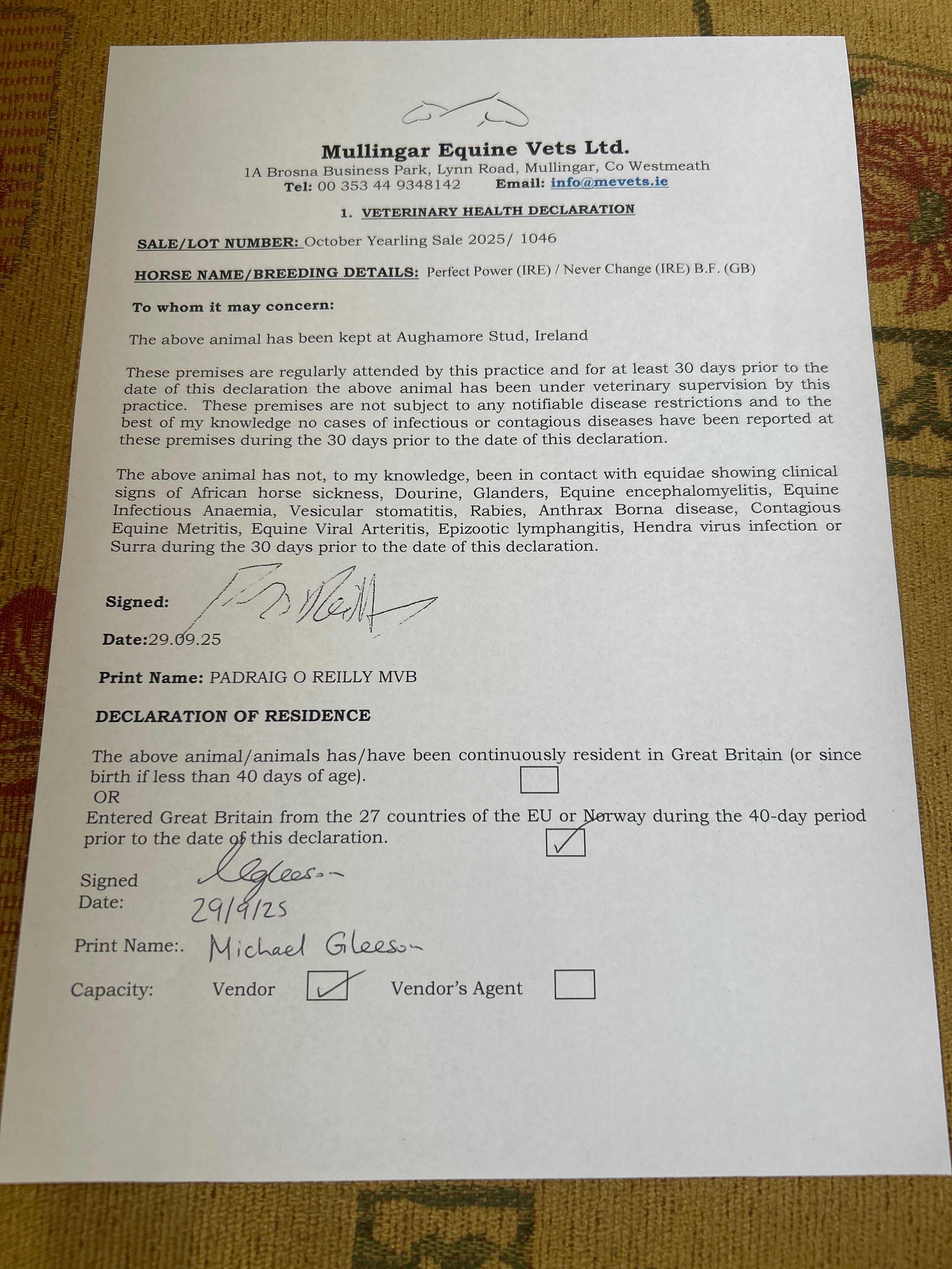 Consignor: Aughamore Stud, Ireland