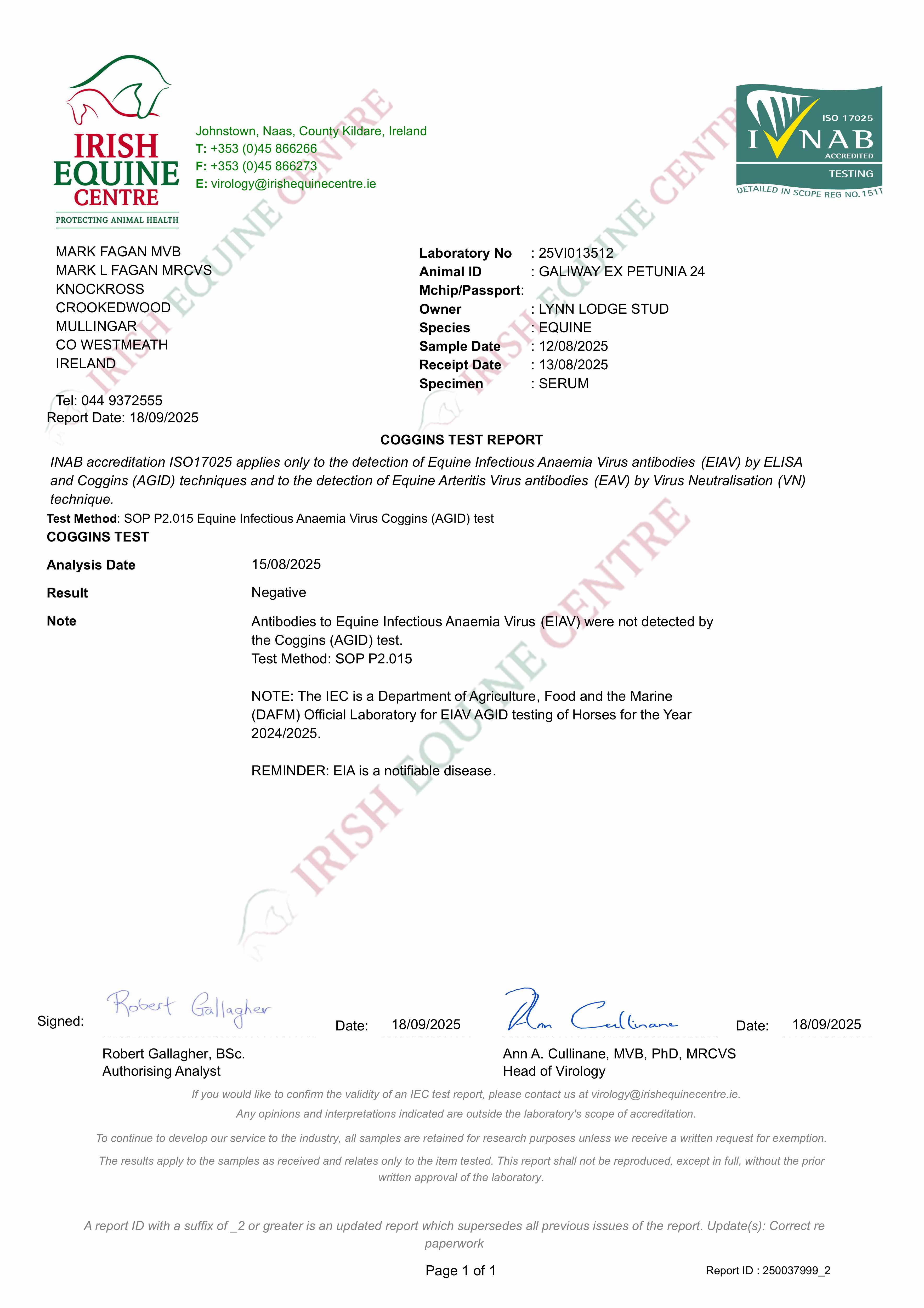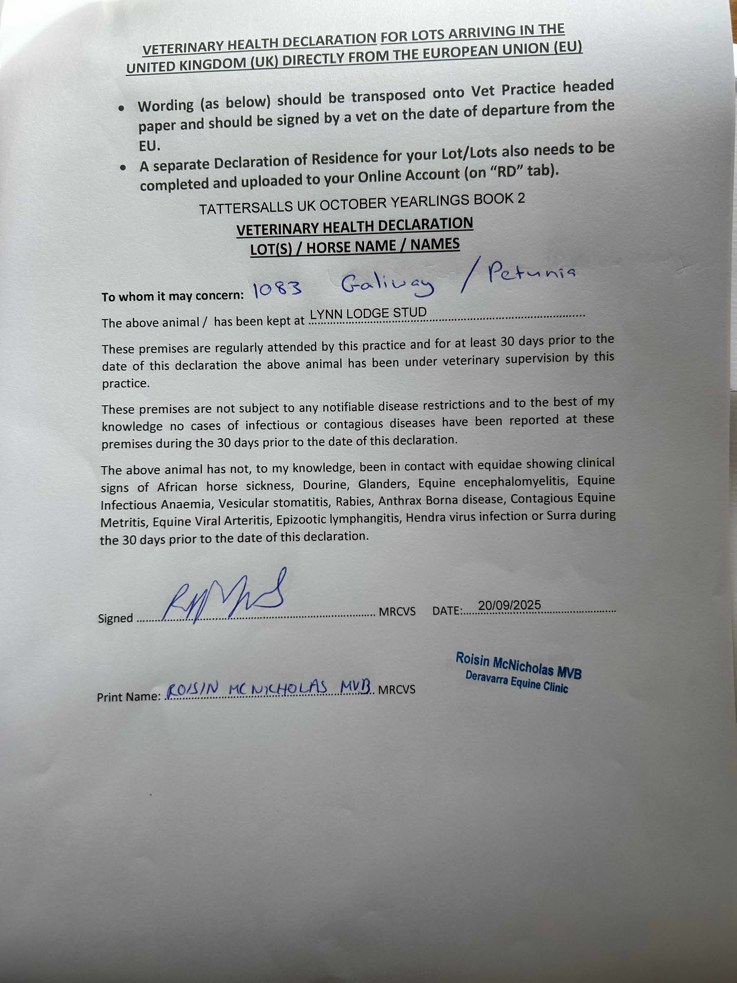 Consignor: Lynn Lodge Stud, Ireland