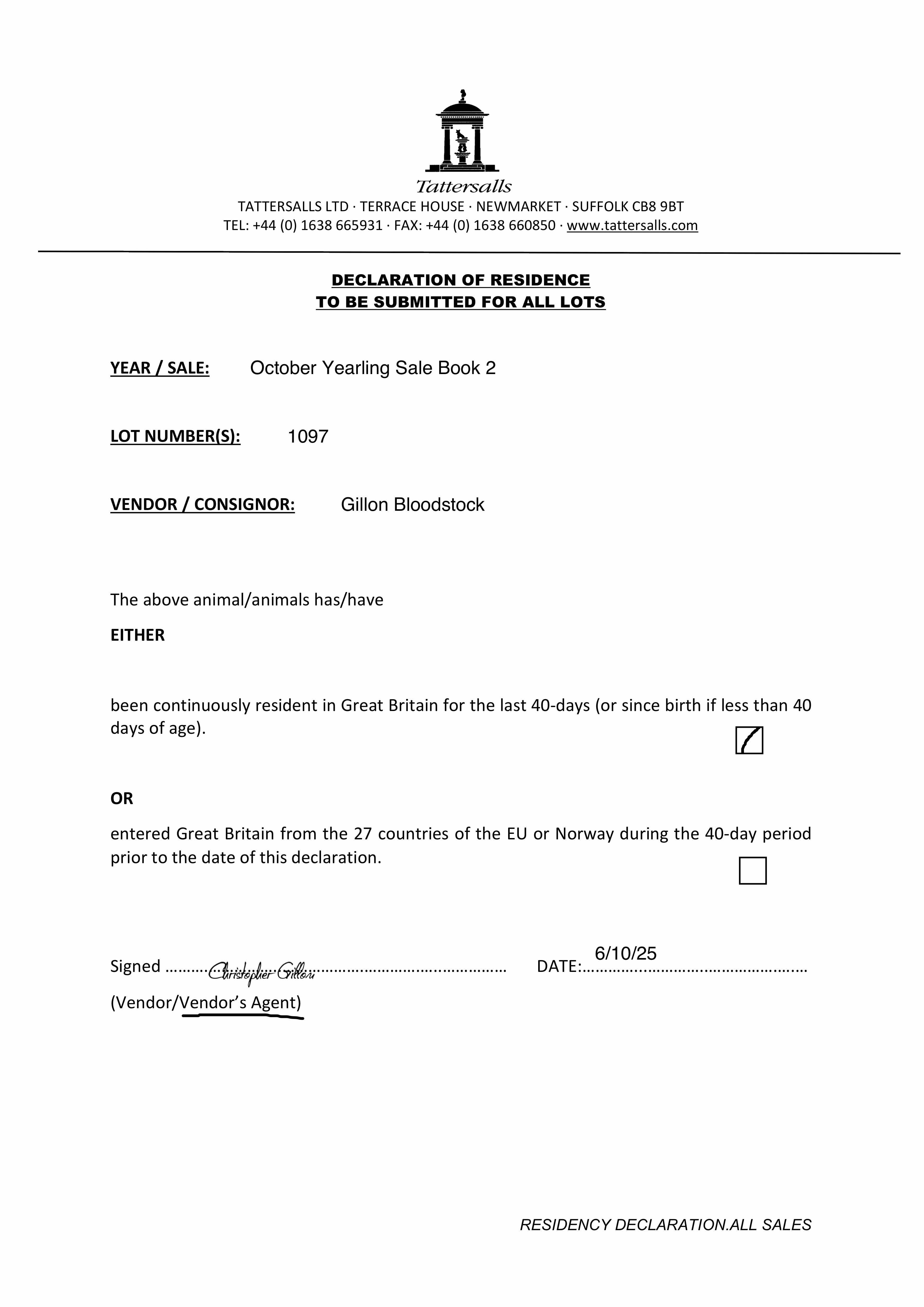 Consignor: Gillon Bloodstock