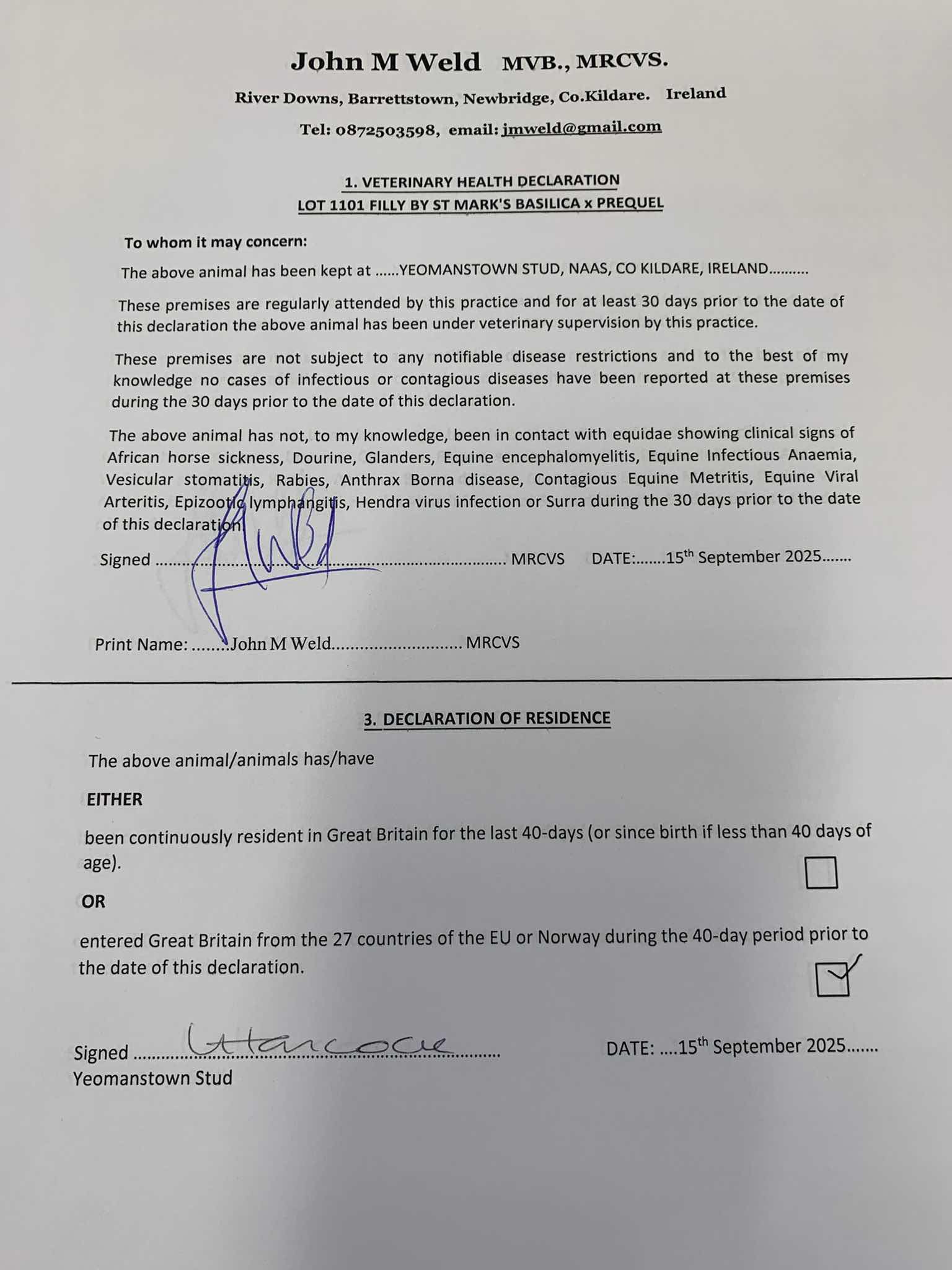 Consignor: Yeomanstown Stud, Ireland