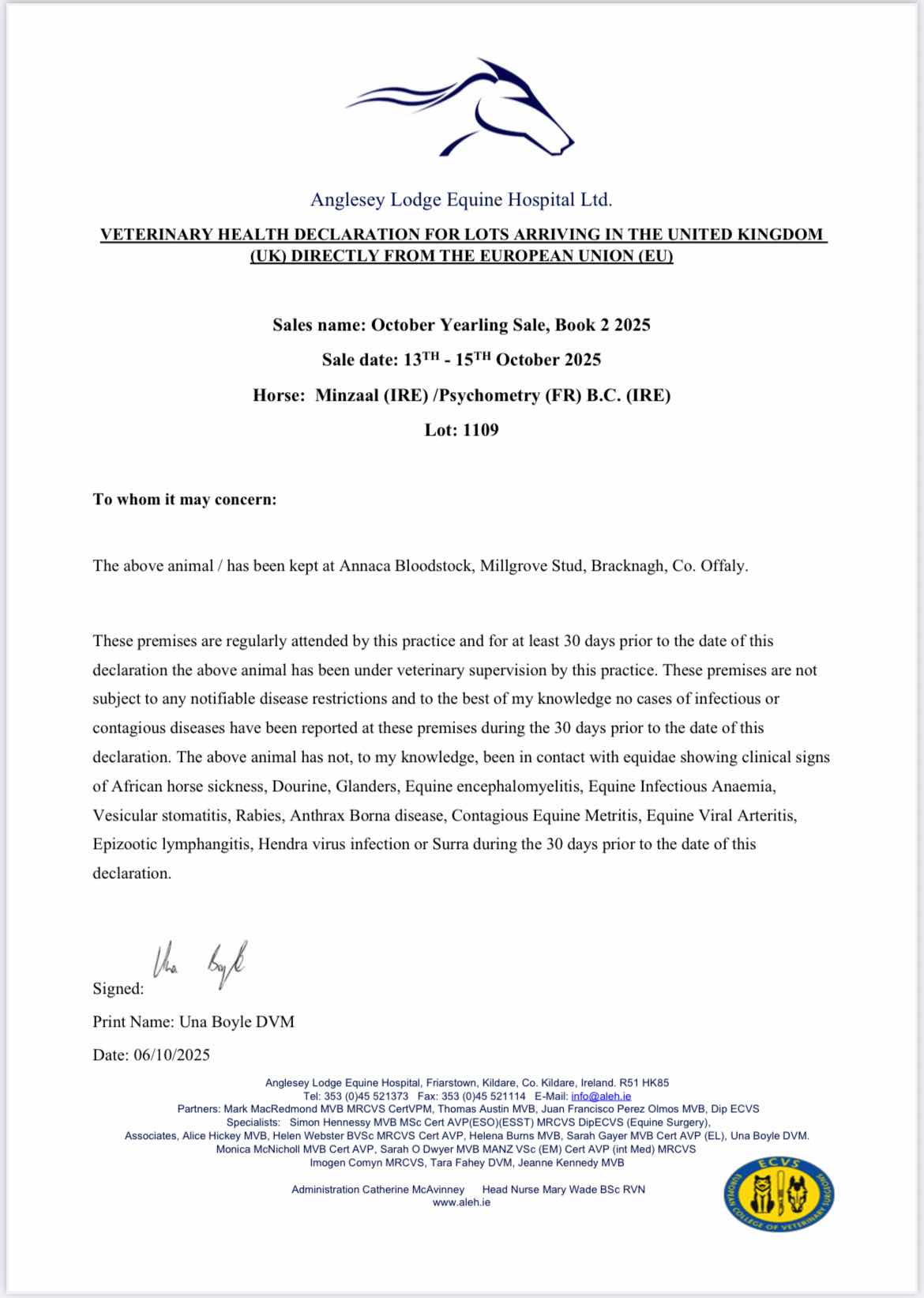 Consignor: Skara Stud, Ireland