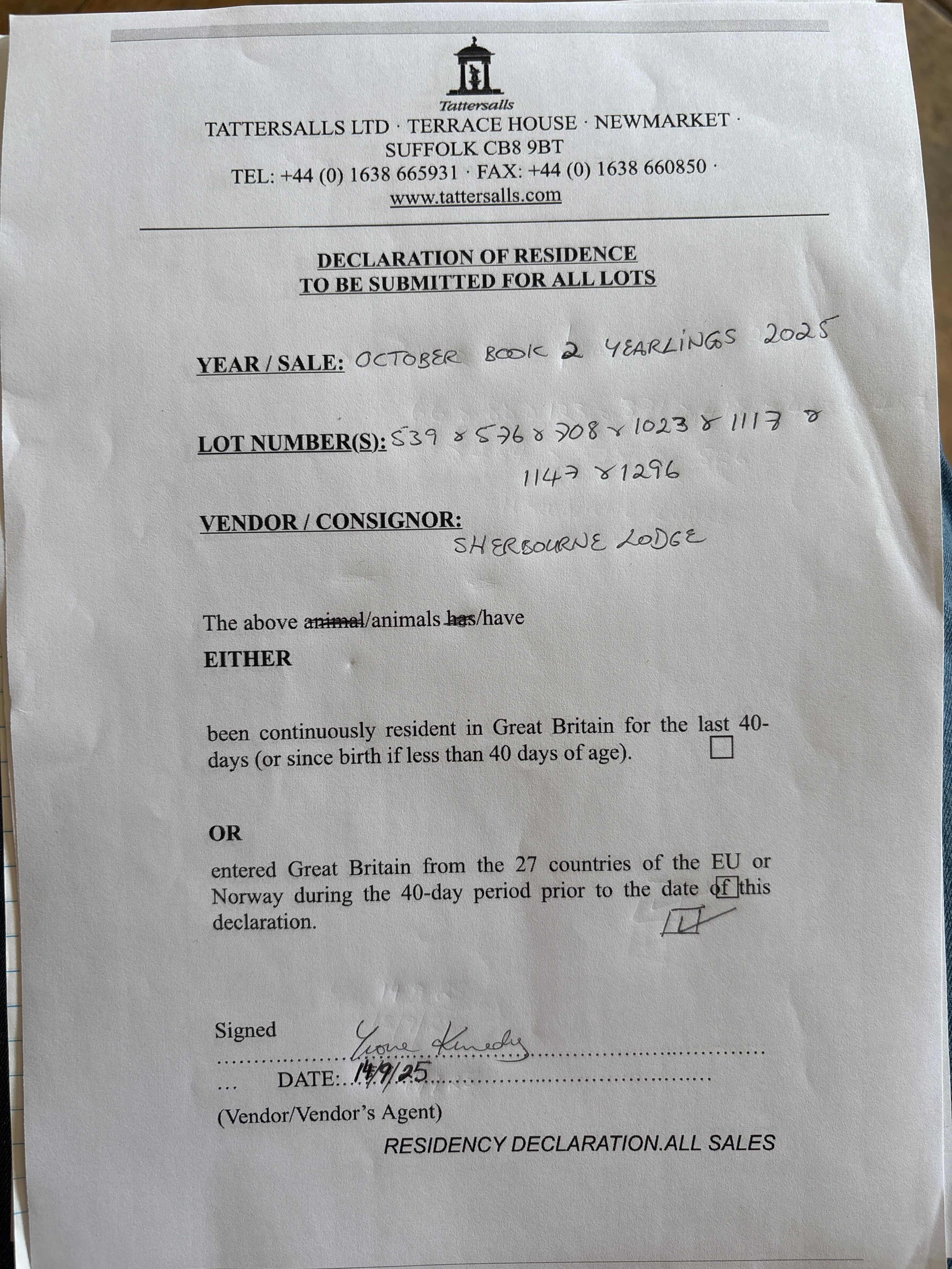 Consignor: Sherbourne Lodge, Ireland