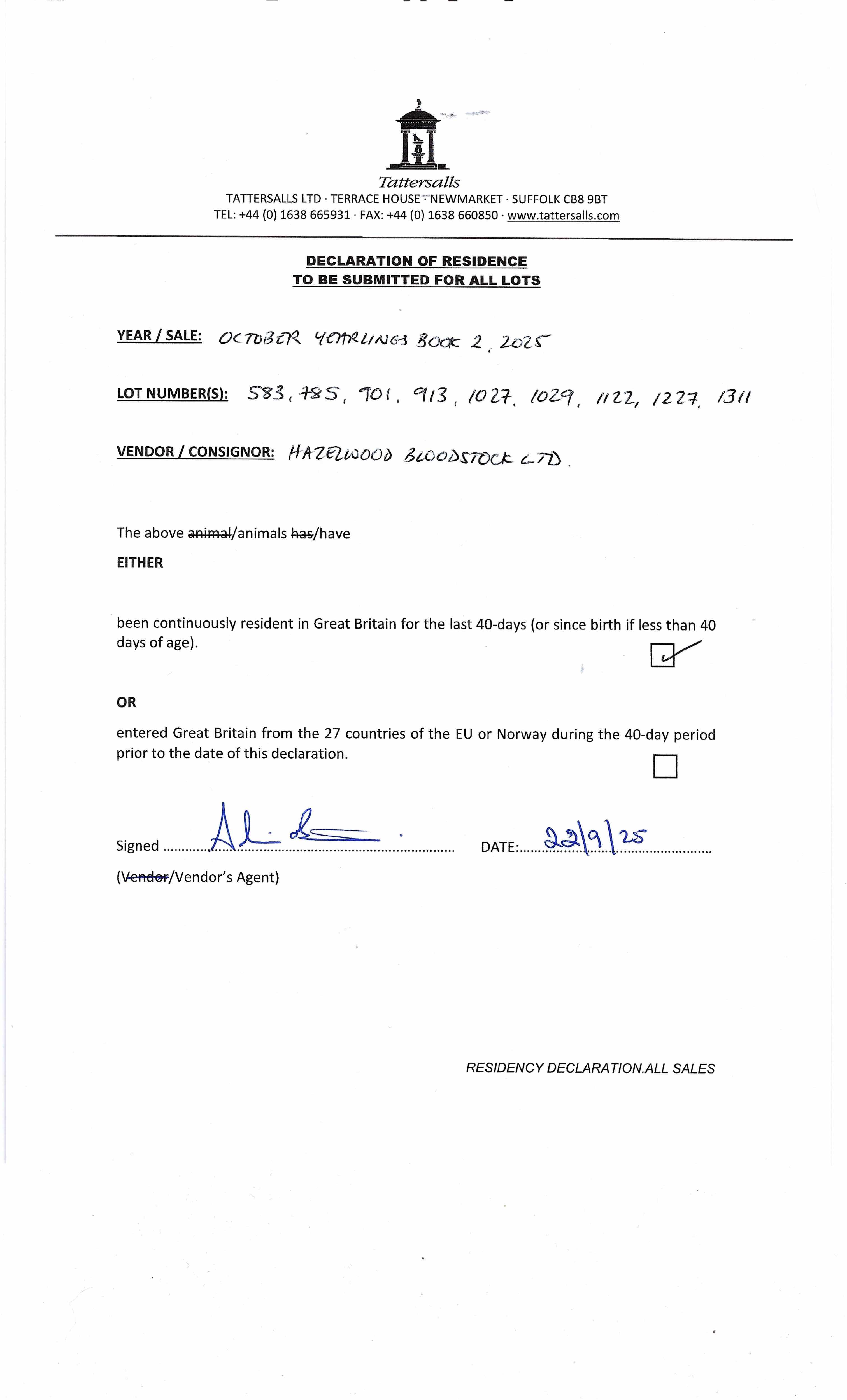 Contact: Adrian O'Brien ✆ 07468456488 ✉ adrian@hazelwoodbloodstock.co.uk