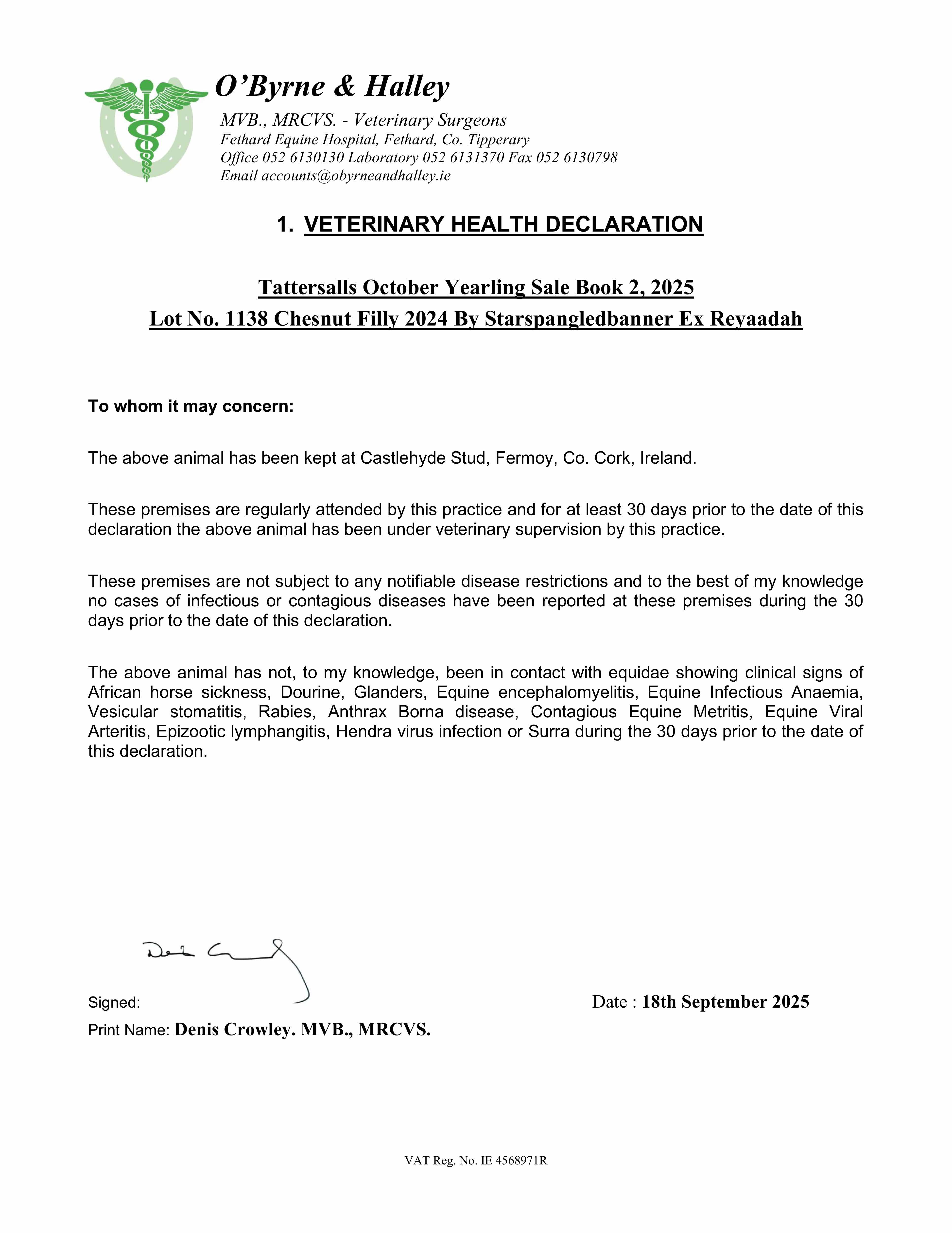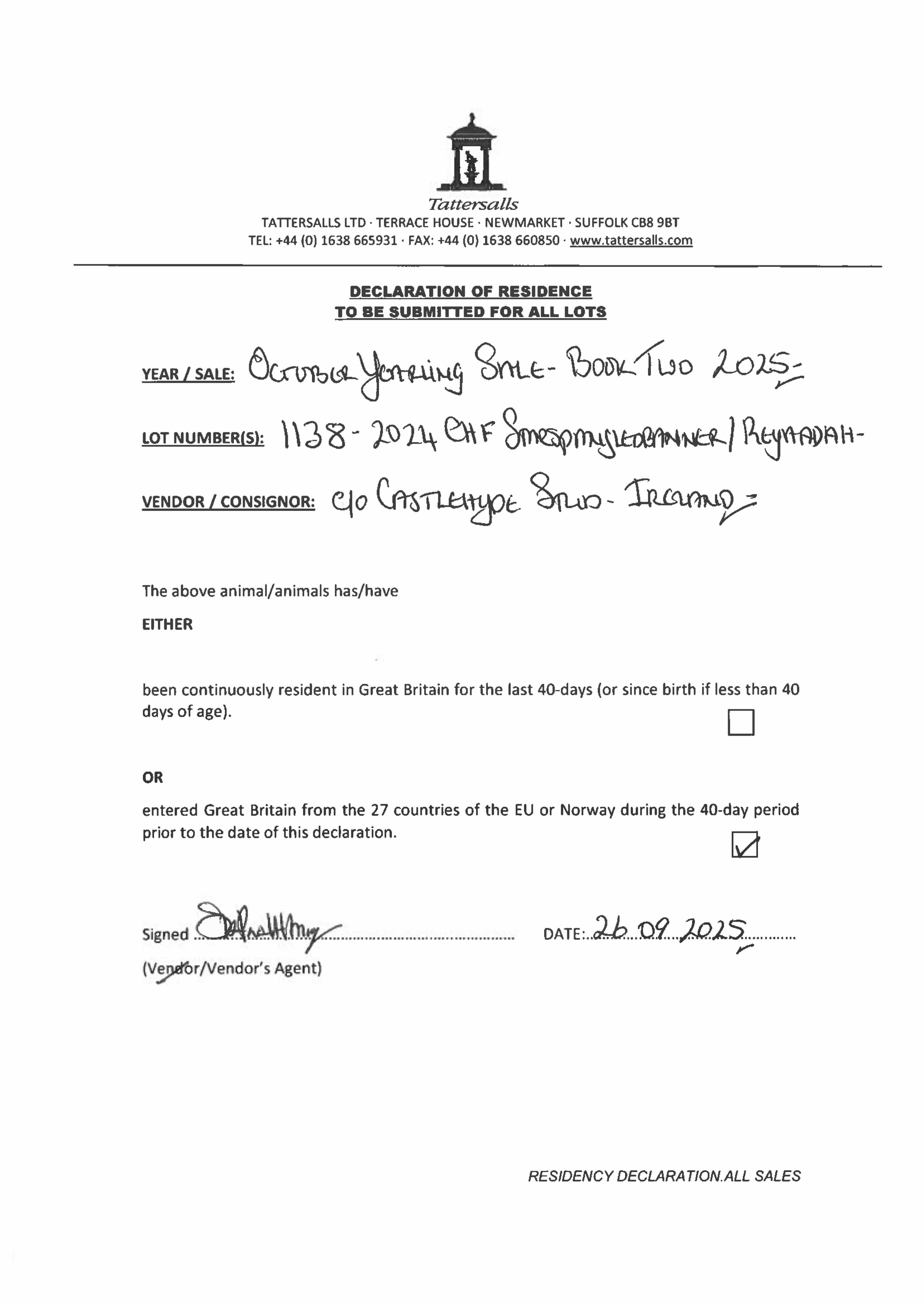 Consignor: Manister House Stud, Ireland