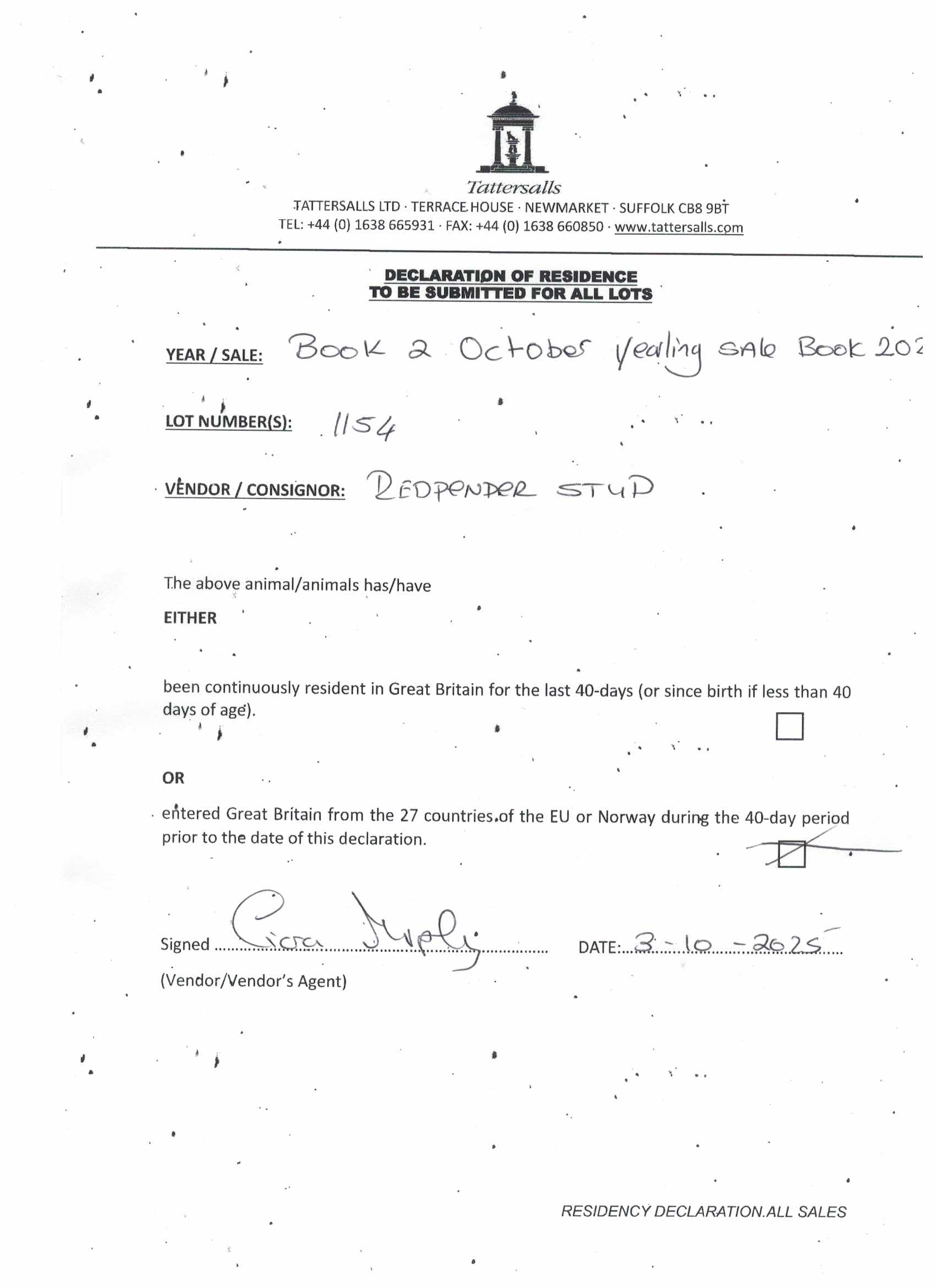Consignor: Redpender Stud, Ireland