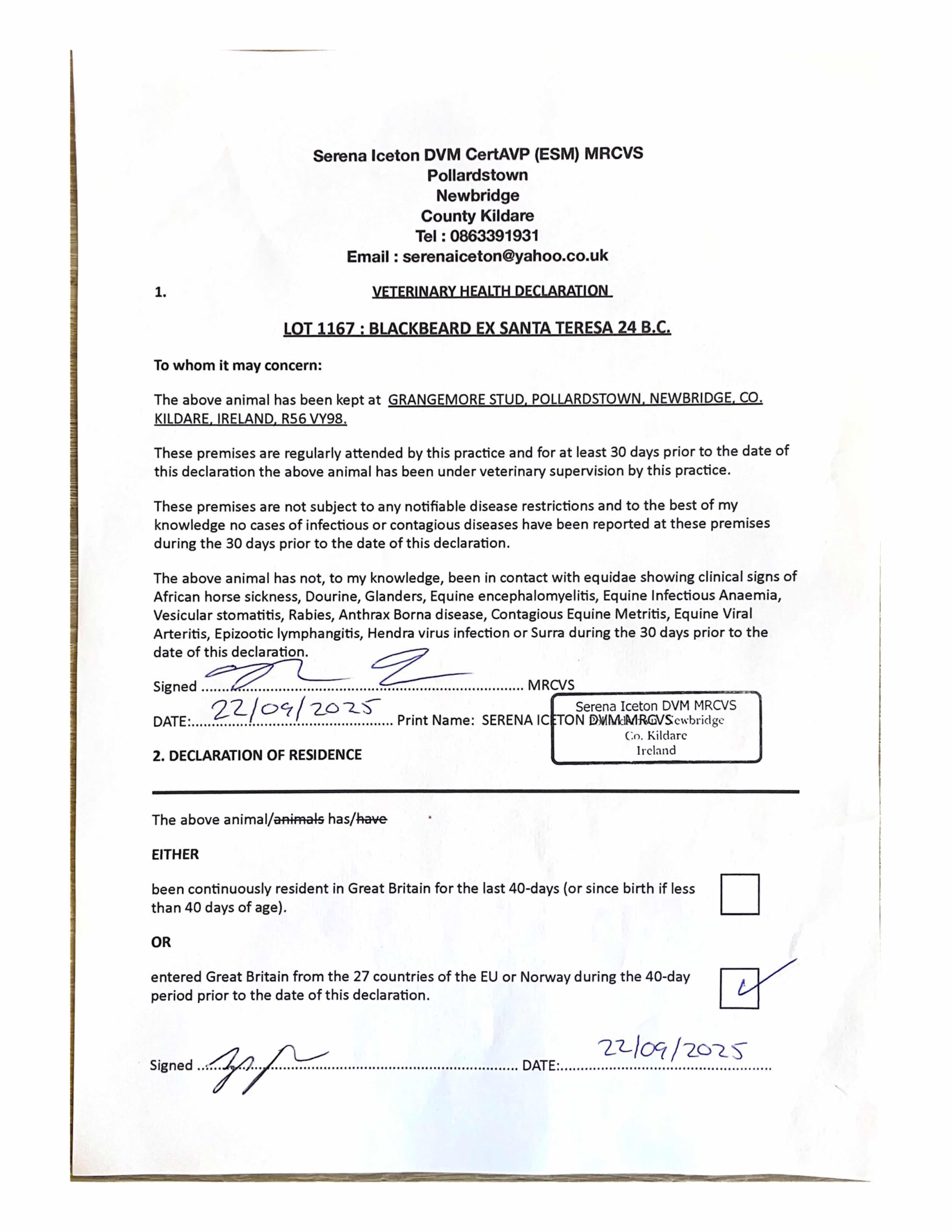 Consignor: Grangemore Stud, Ireland