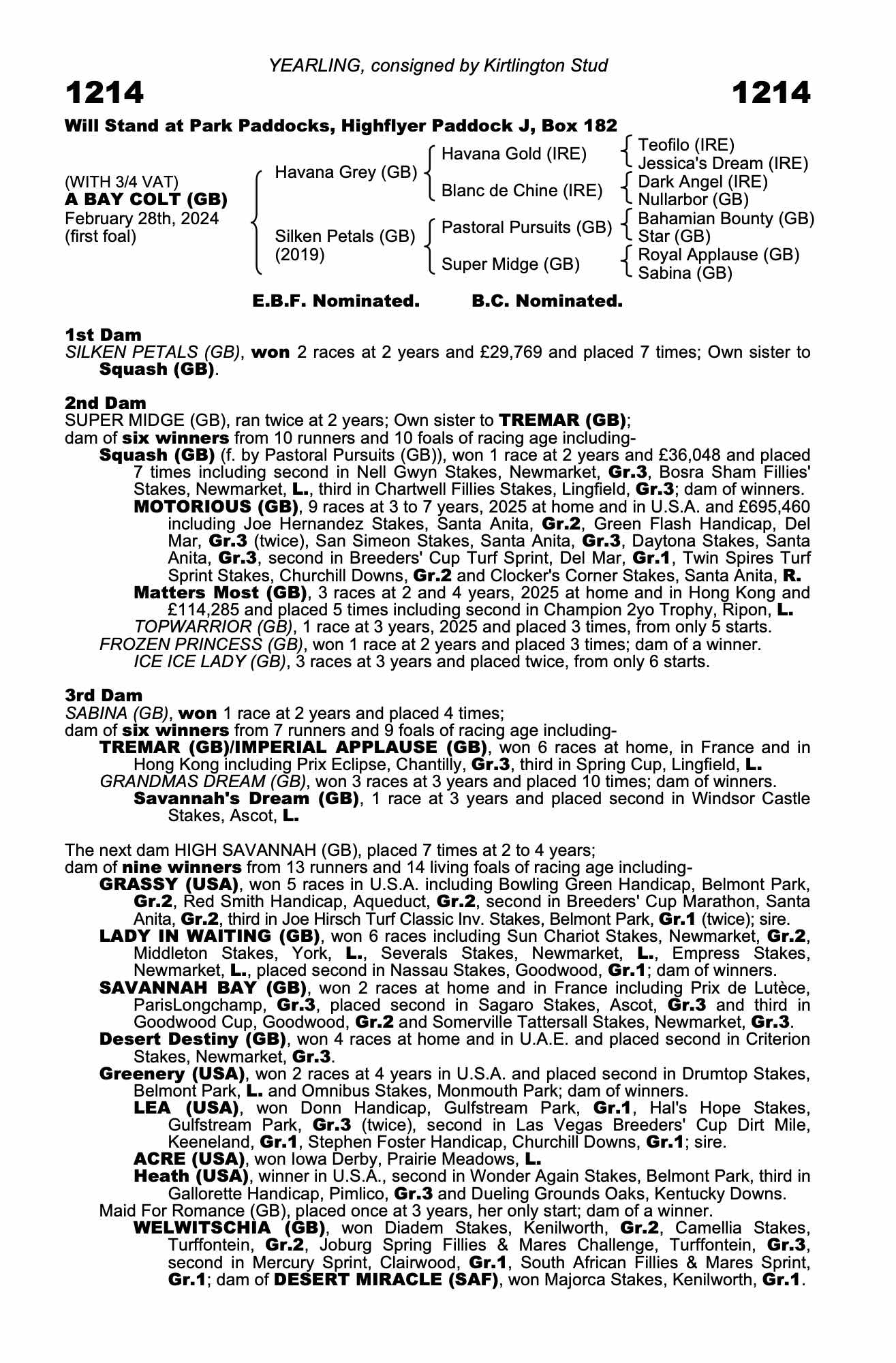 Lot 1214 Havana Grey (GB) /Silken Petals (GB) B.C. (GB)