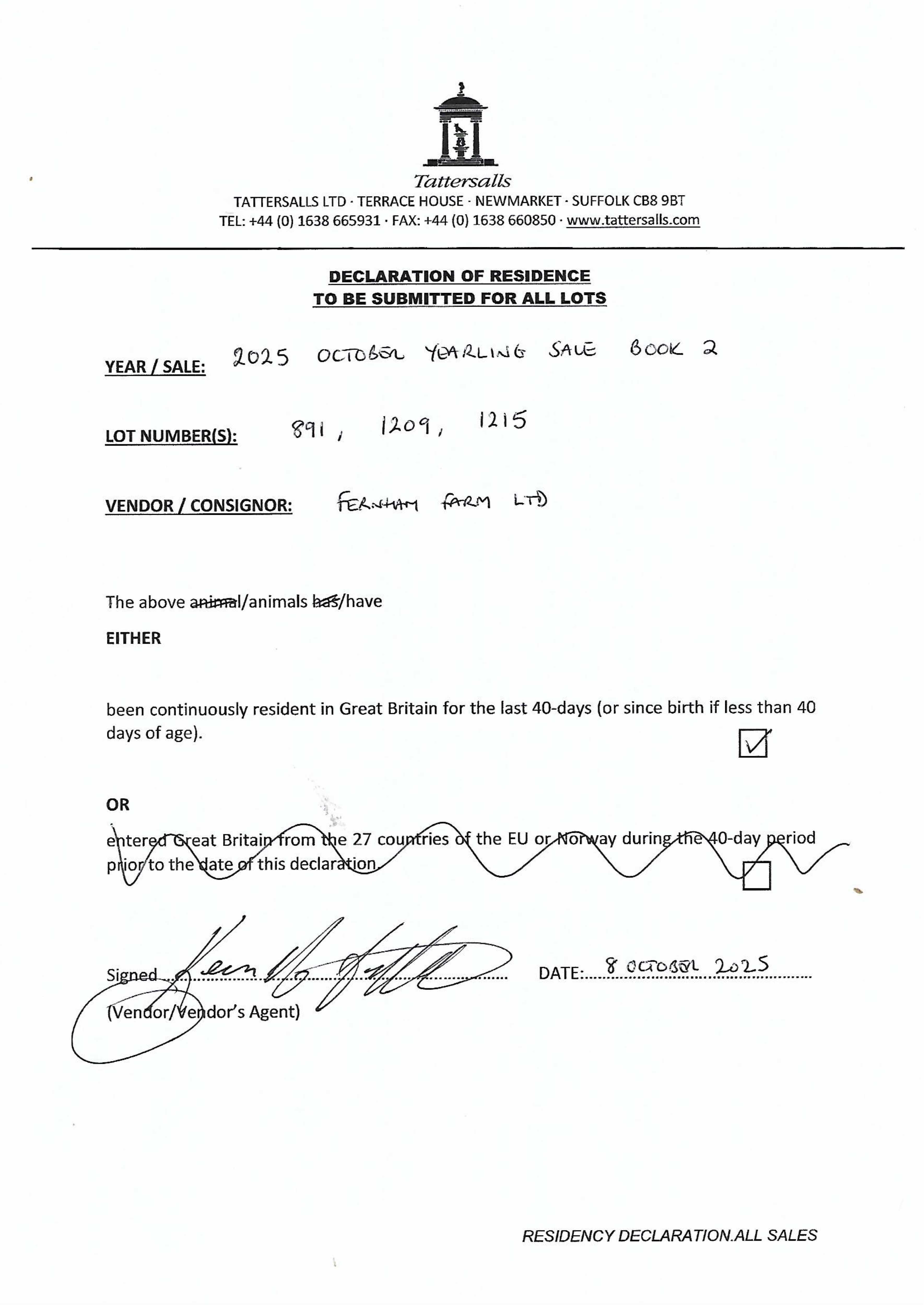 Consignor: Fernham Farm
