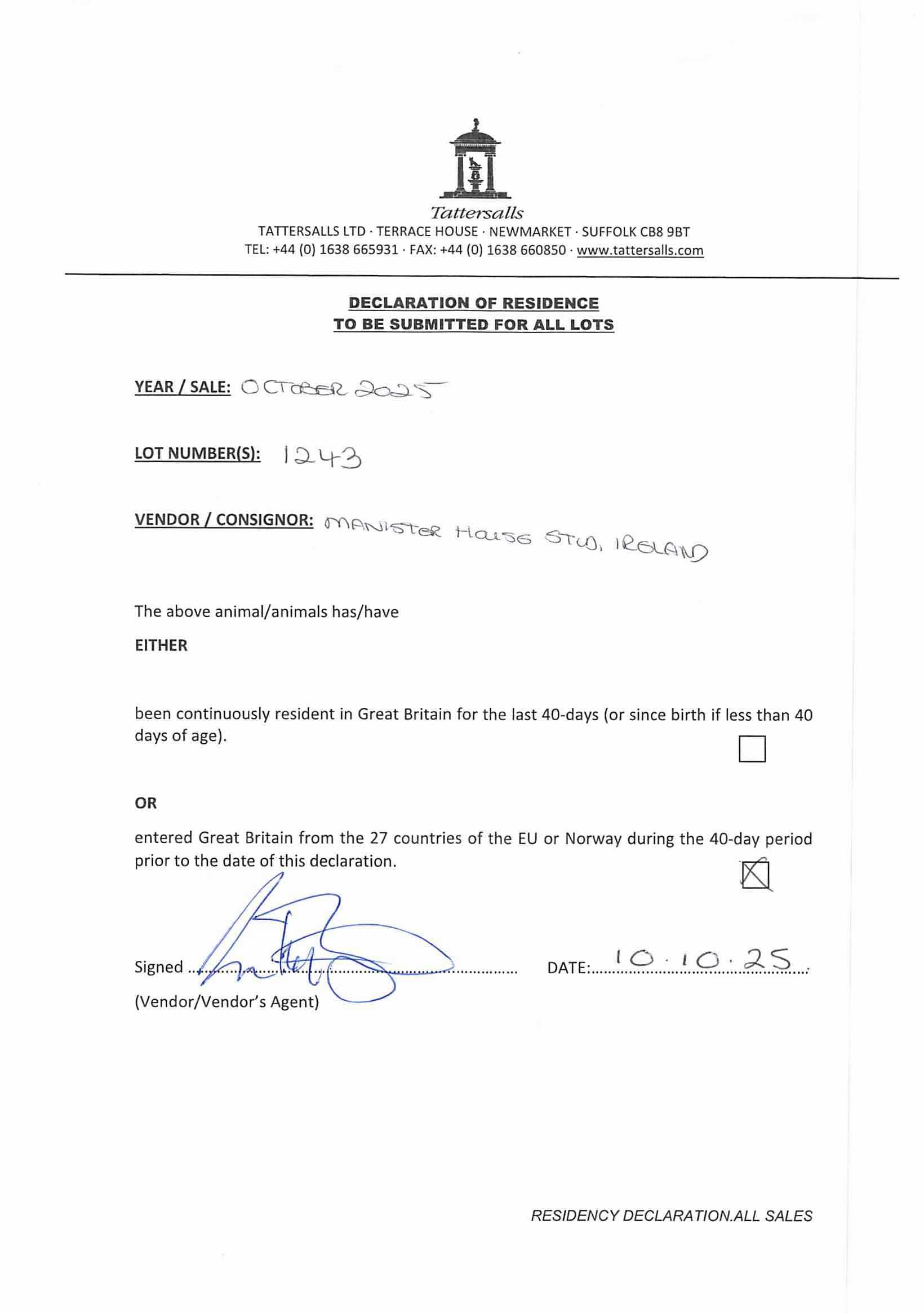 Consignor: Manister House Stud, Ireland