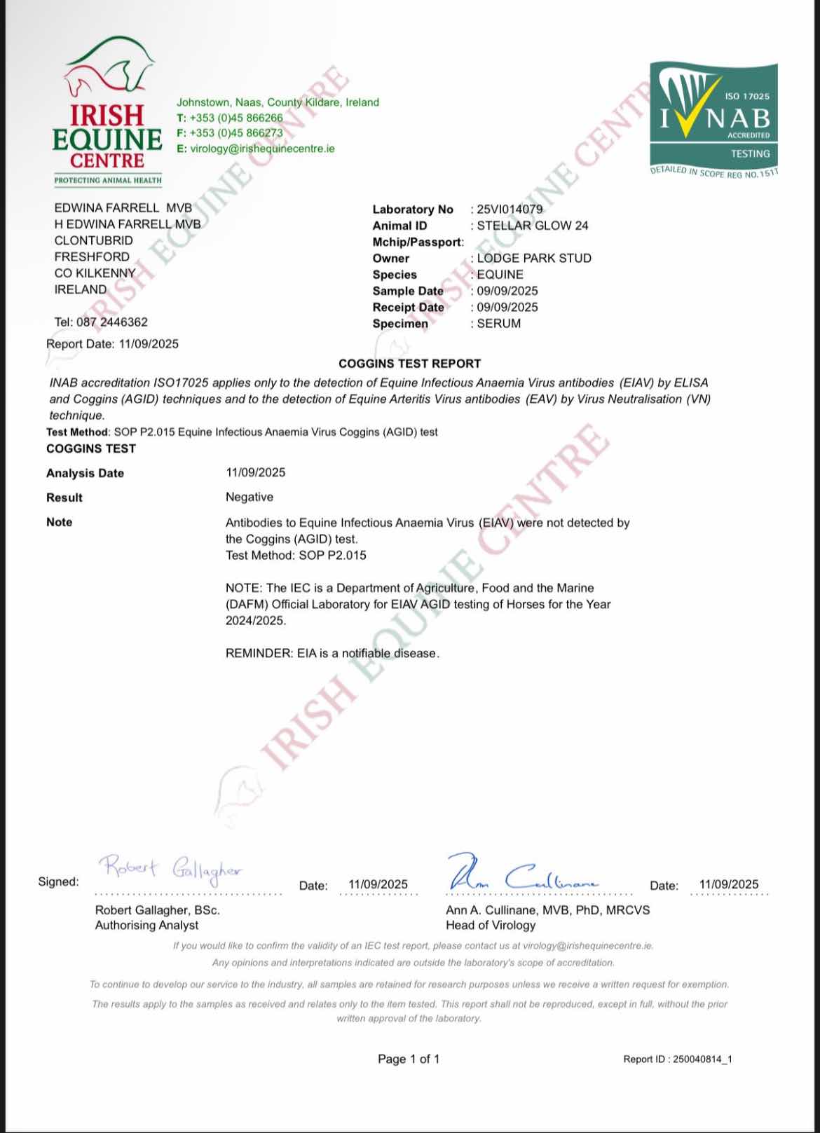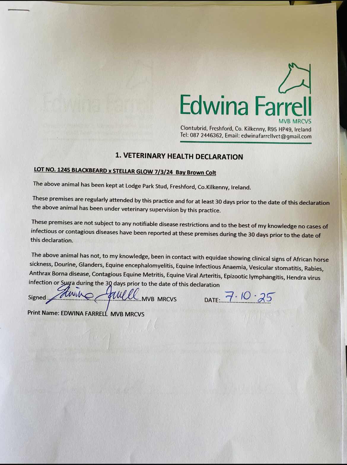Consignor: Lodge Park Stud, Ireland