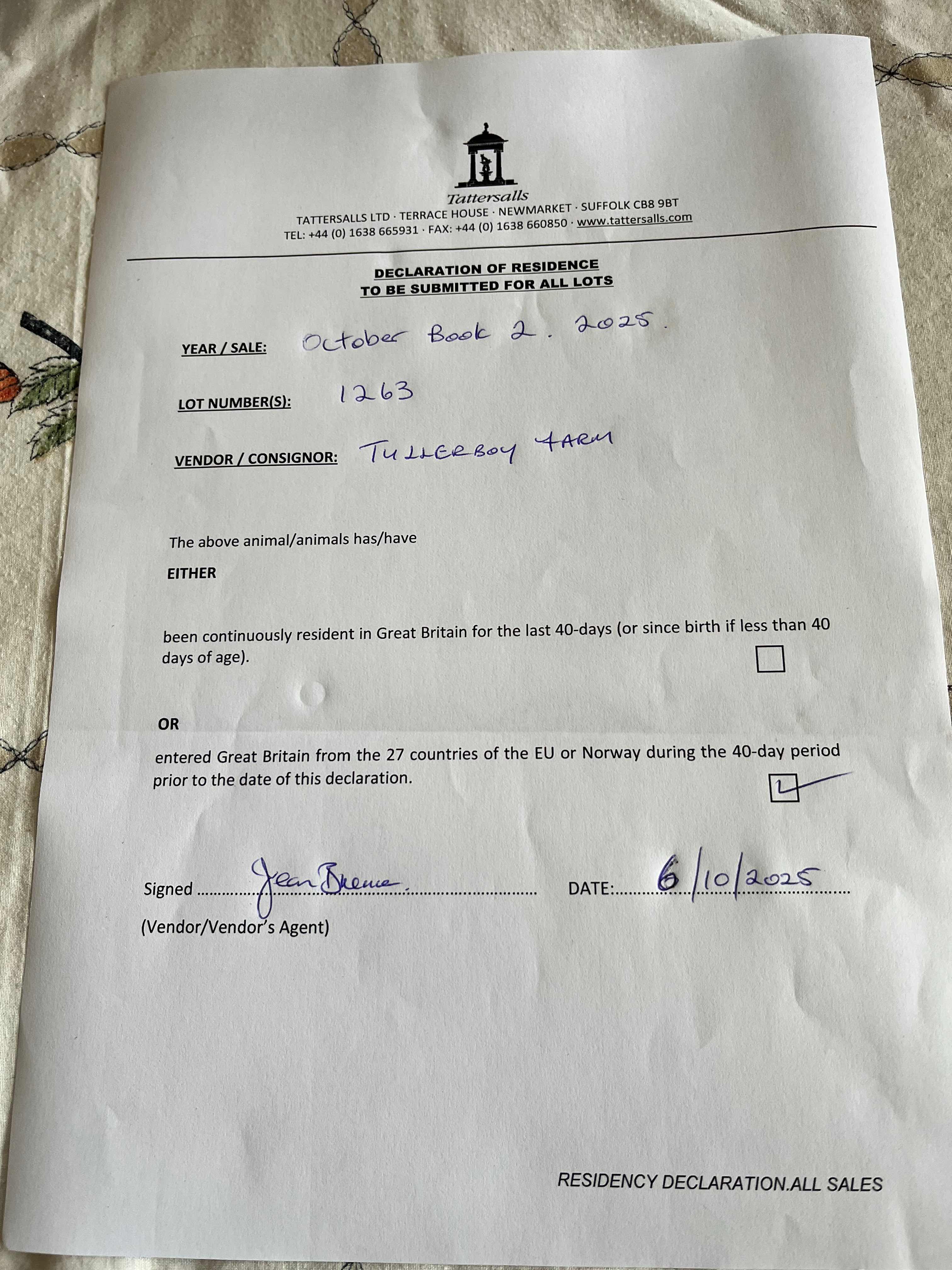 Consignor: Tullerboy Farm, Ireland